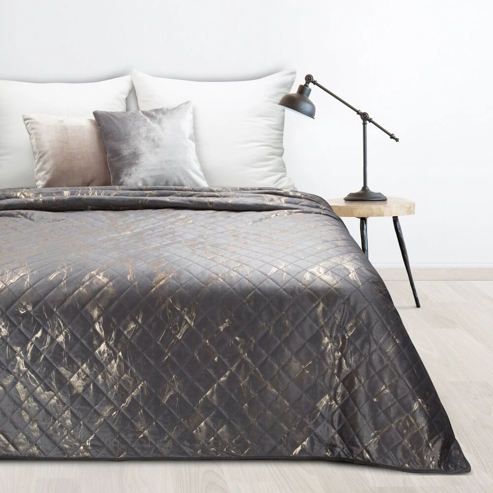 Przyjemna w dotyku narzuta pikowana metodą bezszwowego zgrzewania hotpress w subtelny wzór geometryczny. Sprawdzi się jako narzuta na łóżko lub sofę w salonie. szerokość: 200 cm, długość: 220 cm, kolor: stalowy, Gramatura: 150 GSM, Skład: 100% poliester