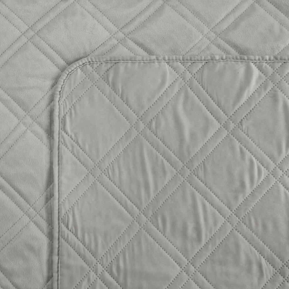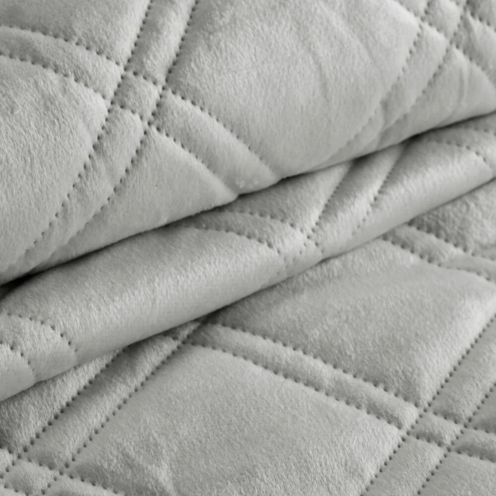 Narzuta welurowa, wykonana metodą hot press szerokość: 220 cm, długość: 240 cm, kolor: srebrny, Gramatura: 150 GSM, Skład: 100% poliester