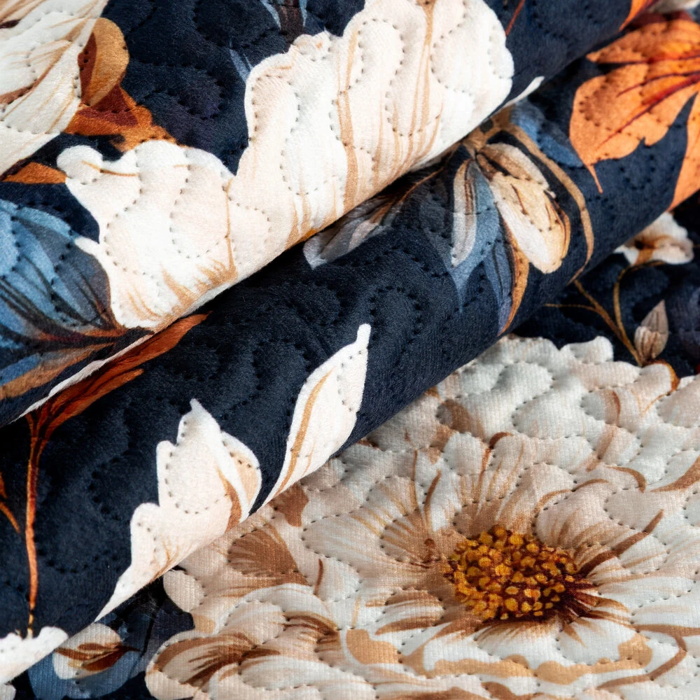 Narzuta drukowana, wykonana techniką hot press szerokość: 200 cm, długość: 220 cm, kolor: granatowy, Skład: 100% poliester