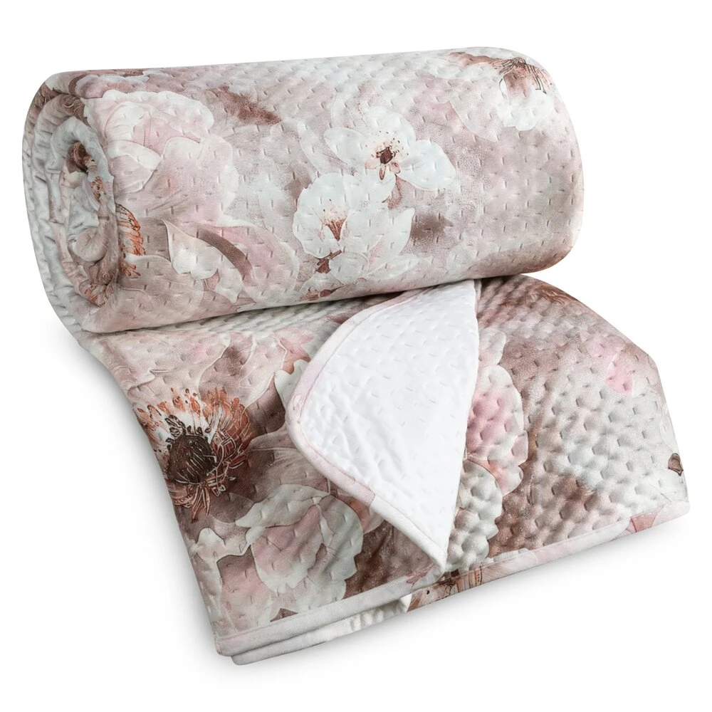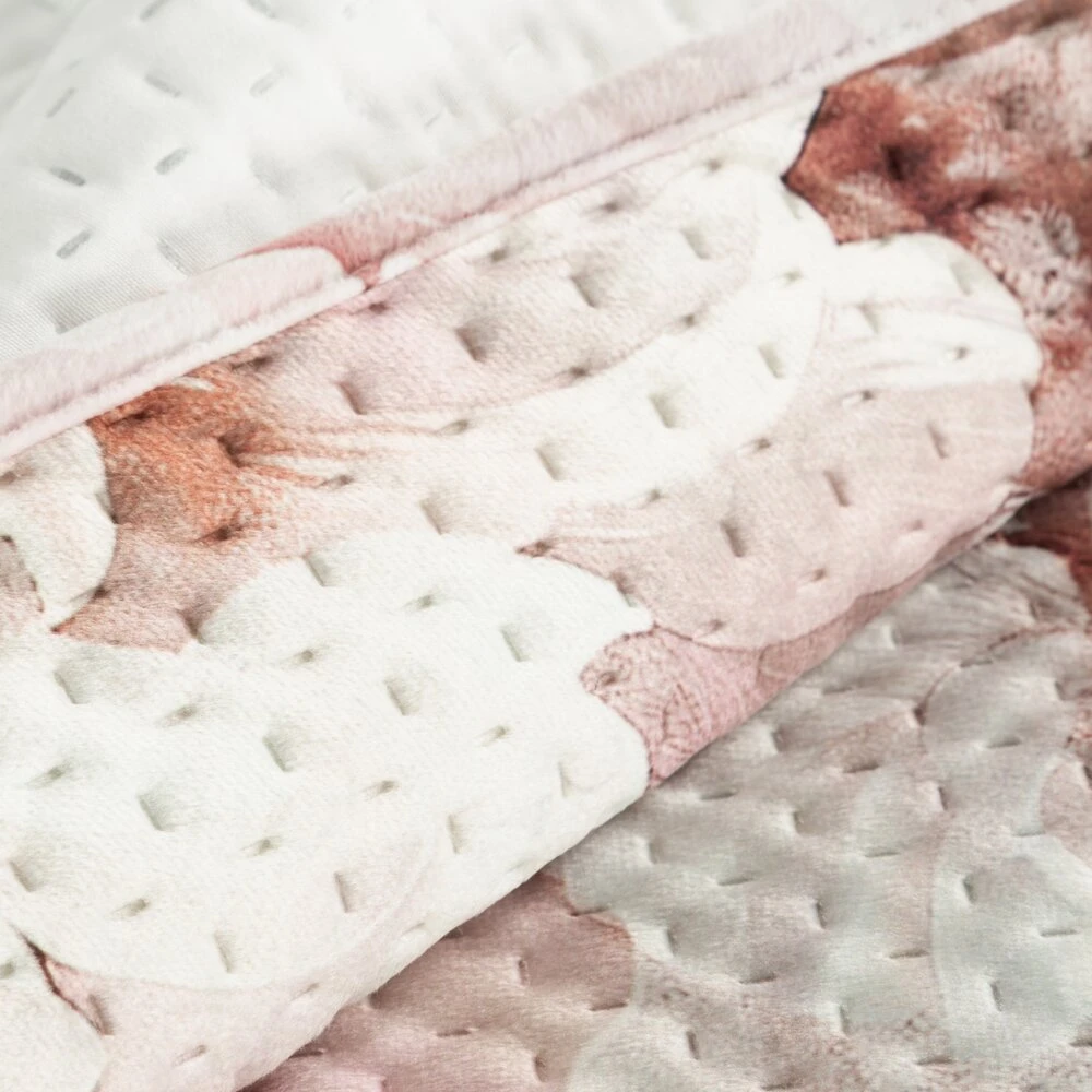 Dekoracyjna narzuta na łóżko z nadrukiem szerokość: 240 cm, długość: 220 cm, kolor: pudrowy, Skład: 100% poliester