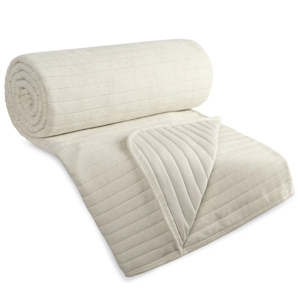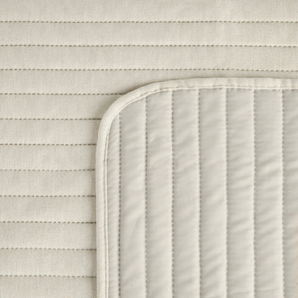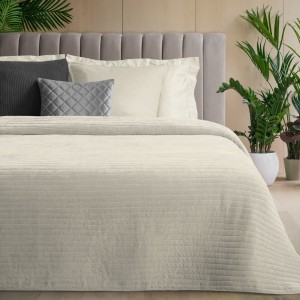 Narzuta wykonana z tkaniny imitującej szenil, ozdobiona przeszyciami szerokość: 220 cm, długość: 240 cm, kolor: kremowy, Gramatura: 160 GSM, Skład: 100% poliester