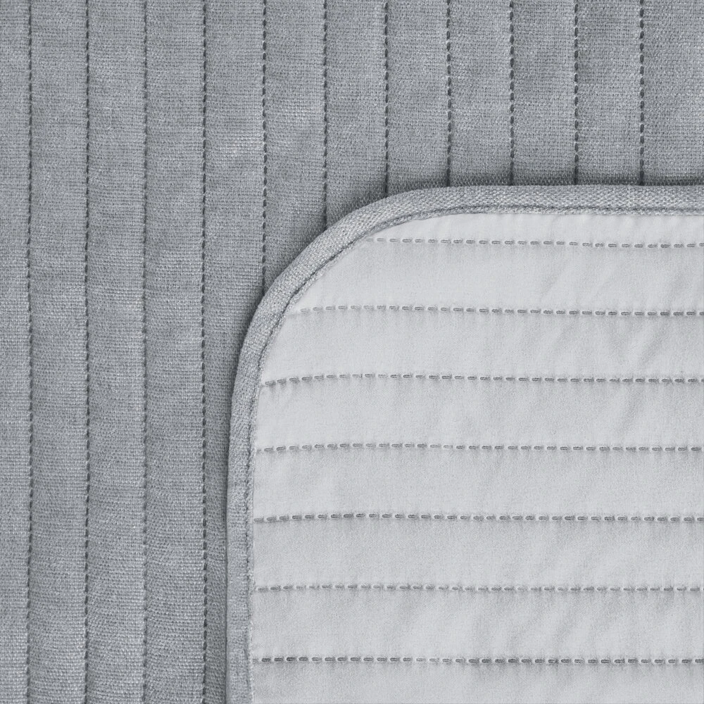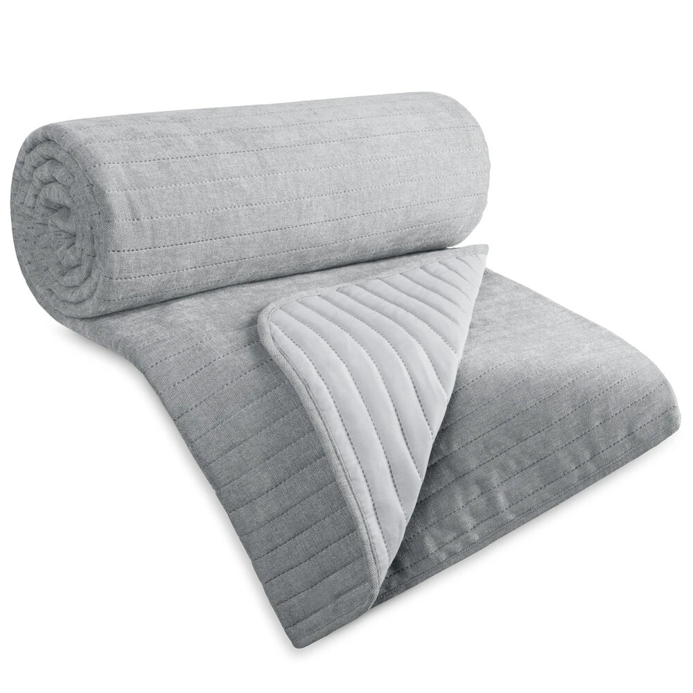 Narzuta wykonana z tkaniny imitującej szenil, ozdobiona przeszyciami szerokość: 220 cm, długość: 240 cm, kolor: srebrny, Gramatura: 160 GSM, Skład: 100% poliester