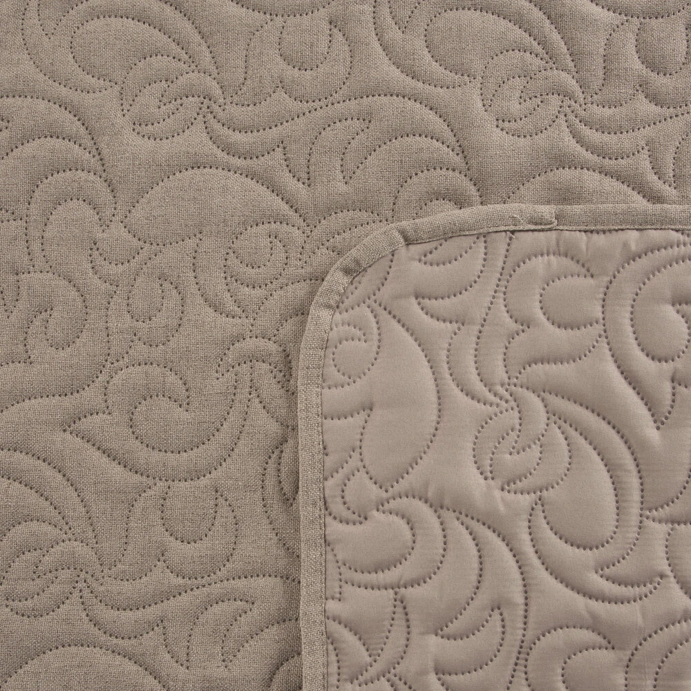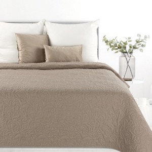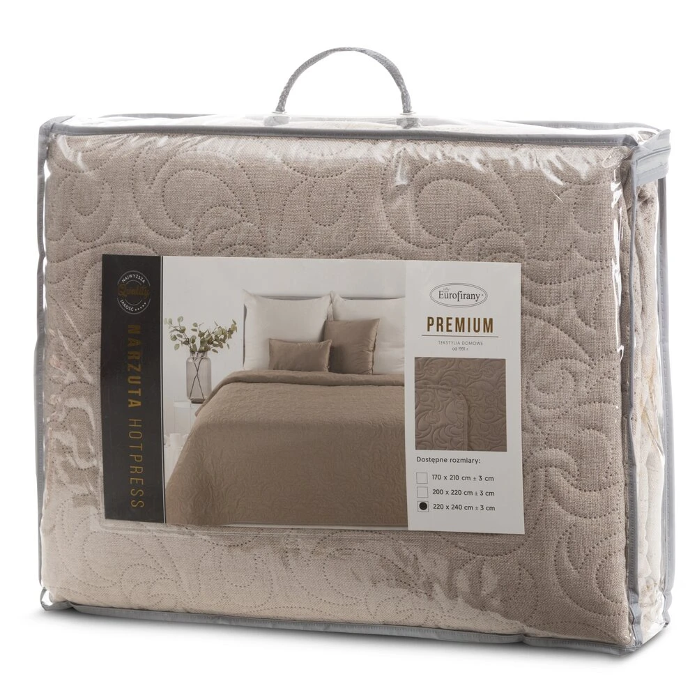 Narzuta hot press imitująca len szerokość: 220 cm, długość: 240 cm, kolor: beżowy, Gramatura: 185 GSM, Skład: 100% poliester