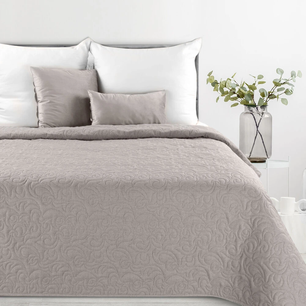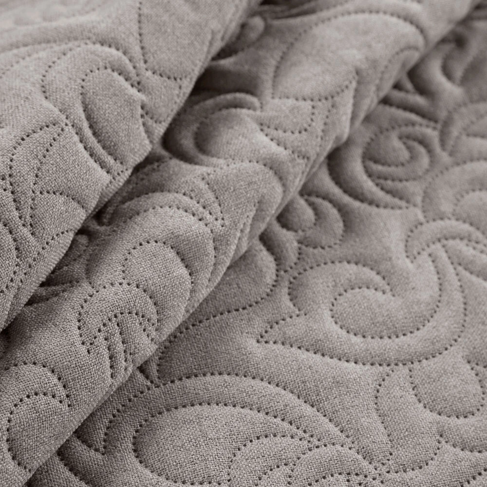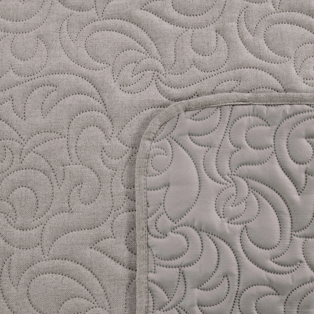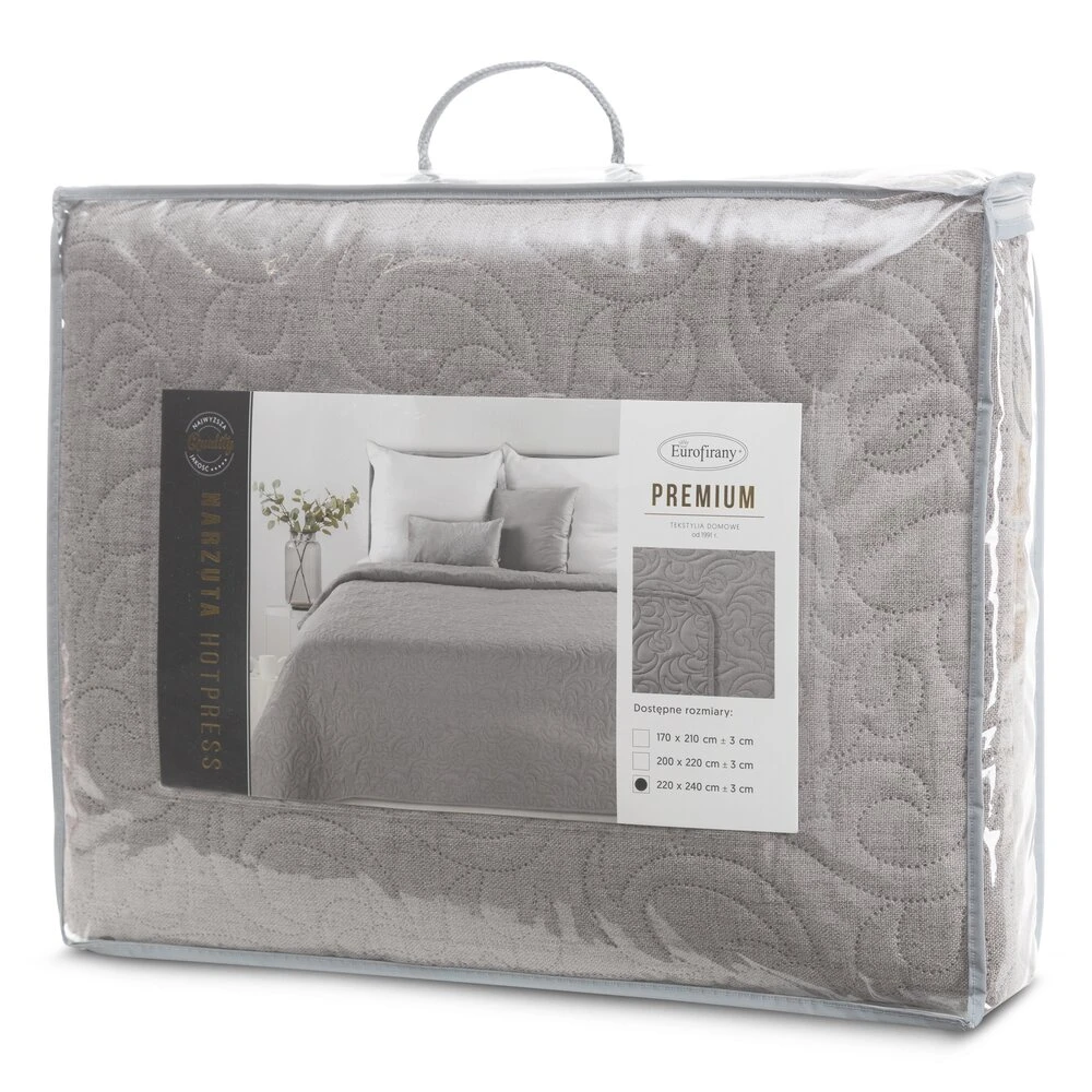 Narzuta hot press imitująca len szerokość: 220 cm, długość: 240 cm, kolor: popielaty, Gramatura: 185 GSM, Skład: 100% poliester