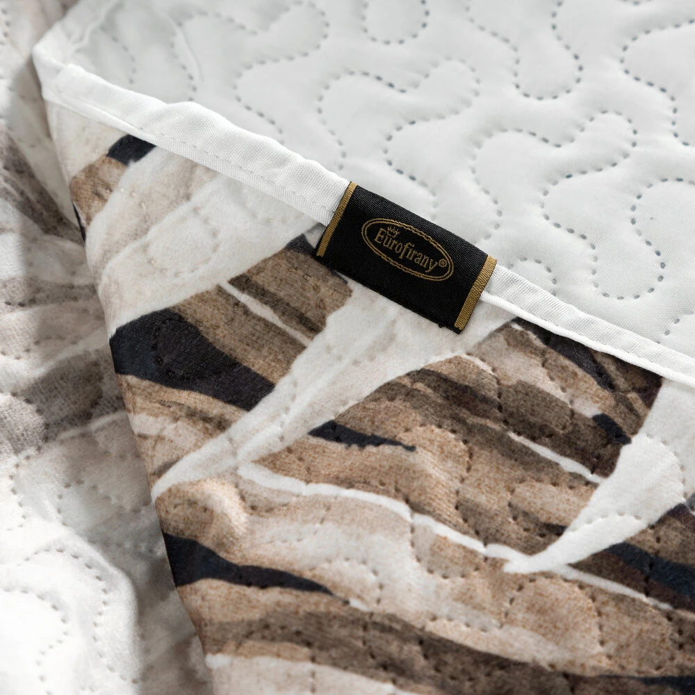 Narzuta drukowana, wykonana techniką hot press szerokość: 170 cm, długość: 210 cm, kolor: biały, Skład: 100% poliester
