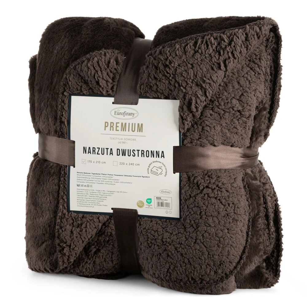 Futrzana narzuta szerokość: 170 cm, długość: 210 cm, kolor: ciemnobrązowy, Gramatura: 430 GSM, Skład: 100% poliester