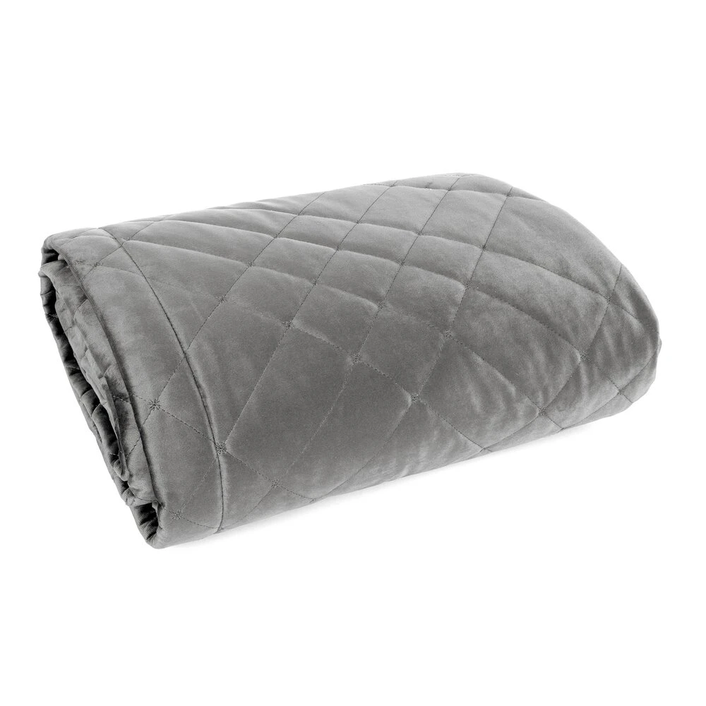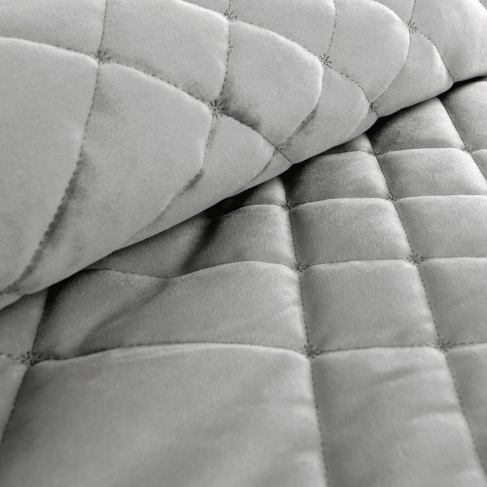 Welwetowa narzuta z przeszyciami szerokość: 170 cm, długość: 210 cm, kolor: srebrny, Gramatura: 250 GSM, Skład: 100% poliester
