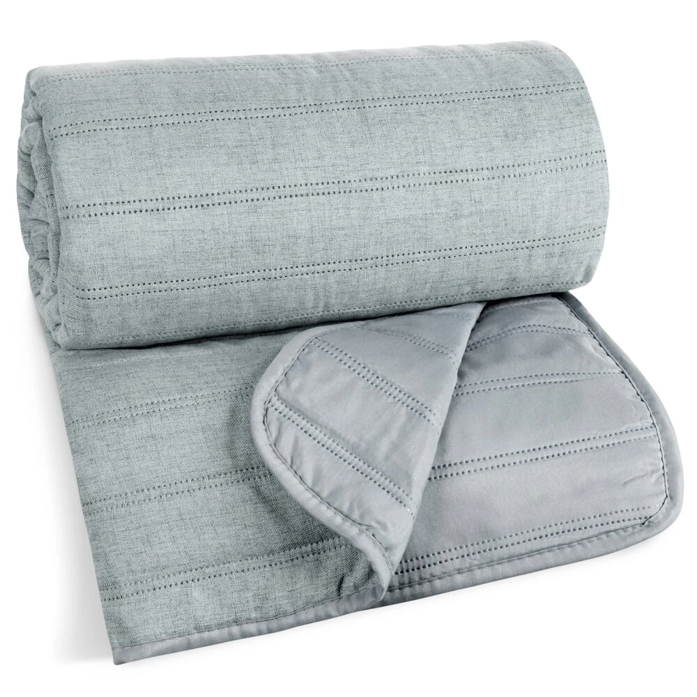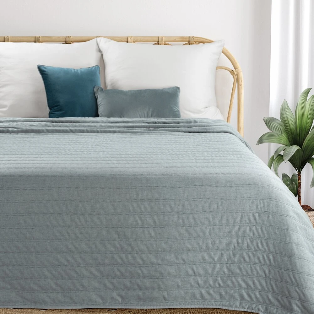 Narzuta na łóżko wykonana z tkaniny imitującej len szerokość: 170 cm, długość: 210 cm, kolor: szałwiowy, Skład: 100% poliester