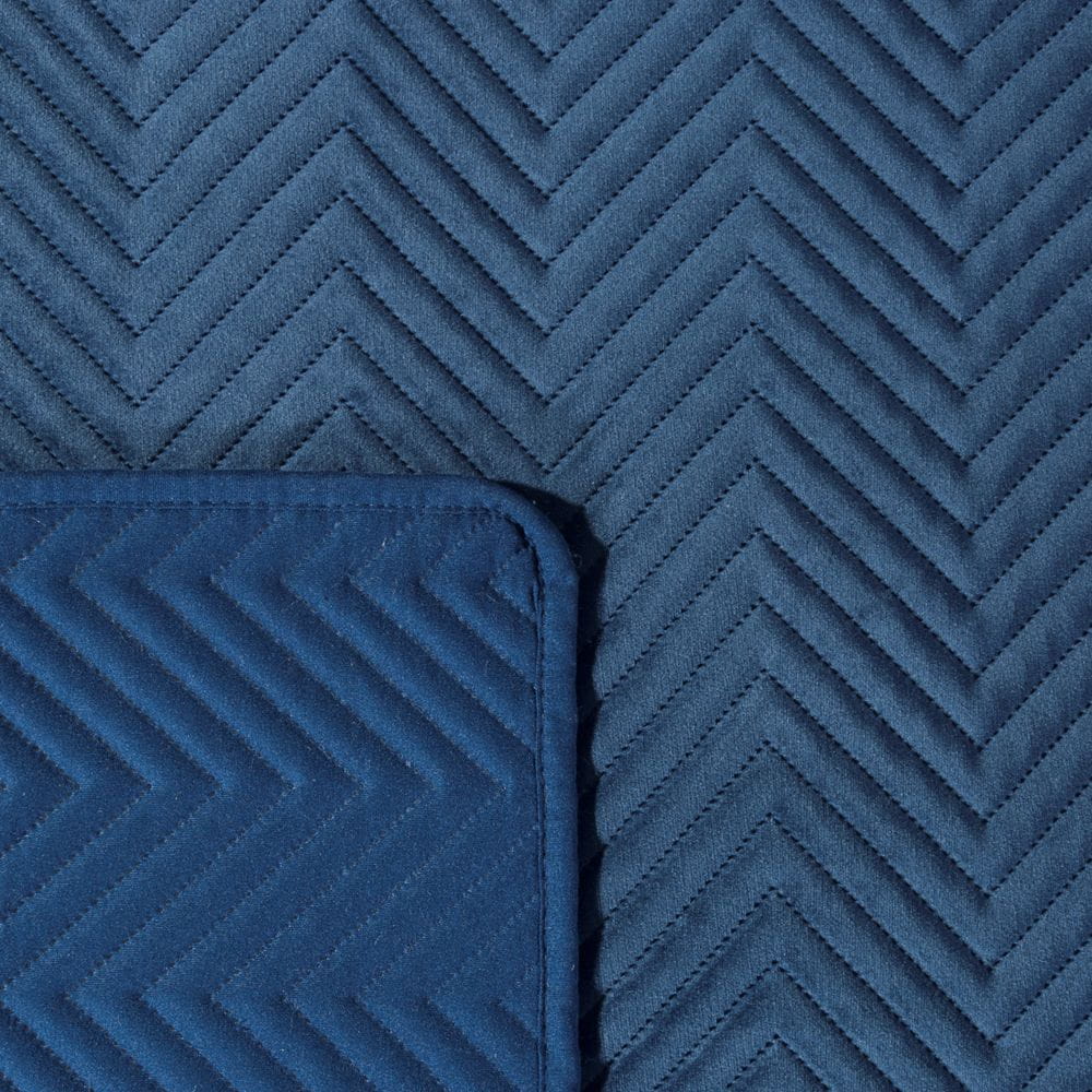 Ekskluzywna narzuta na łóżko z miękkiego i przyjemnego w dotyku welwetu pikowanego w dużą, gęstą jodełką. Do pikowania wykorzystano metodę bezszwową hotpress. szerokość: 170 cm, długość: 210 cm, kolor: granatowy, Gramatura: 250+120+65 GSM, Skład: 100% poliester