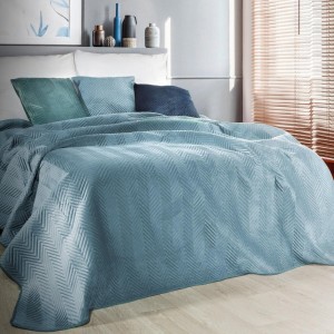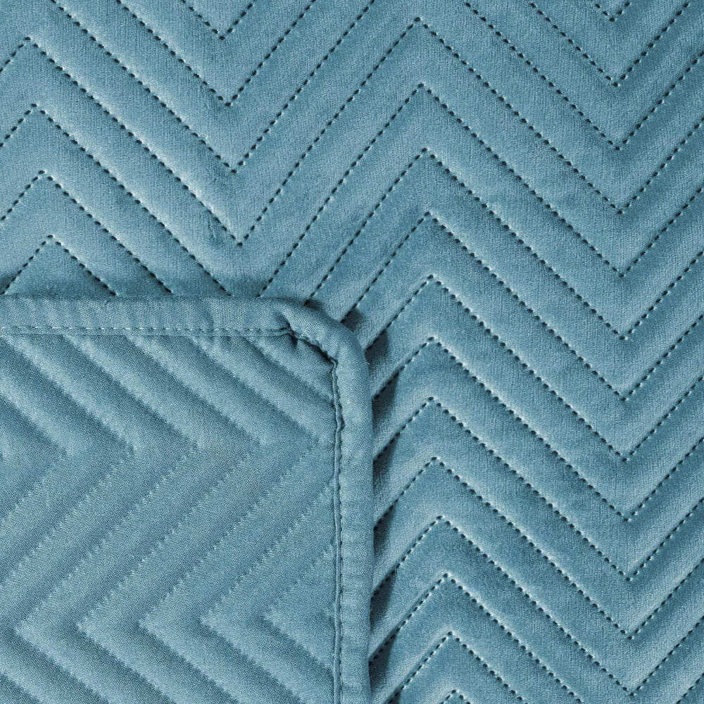 Ekskluzywna narzuta na łóżko z miękkiego i przyjemnego w dotyku welwetu pikowanego w dużą, gęstą jodełką. Do pikowania wykorzystano metodę bezszwową hotpress. szerokość: 230 cm, długość: 260 cm, kolor: niebieski, Gramatura: 250+120+65 GSM, Skład: 100% poliester