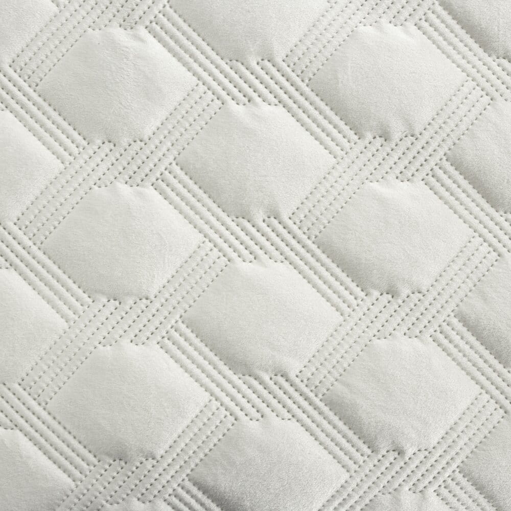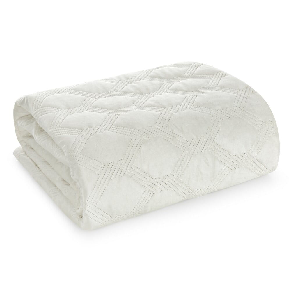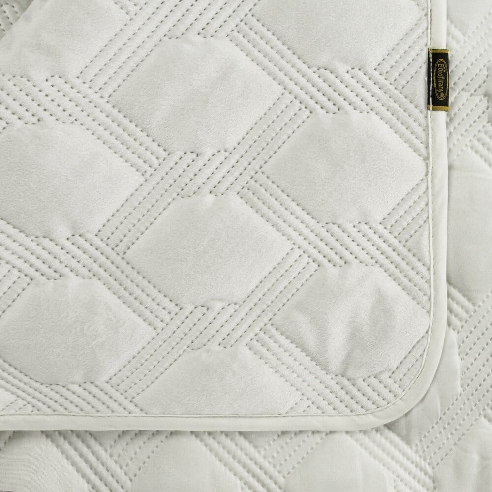 Narzuta welwetowa, wykonana techniką hot press" szerokość: 170 cm, długość: 210 cm, kolor: biały, Gramatura: 250 GSM, Skład: 100% poliester"