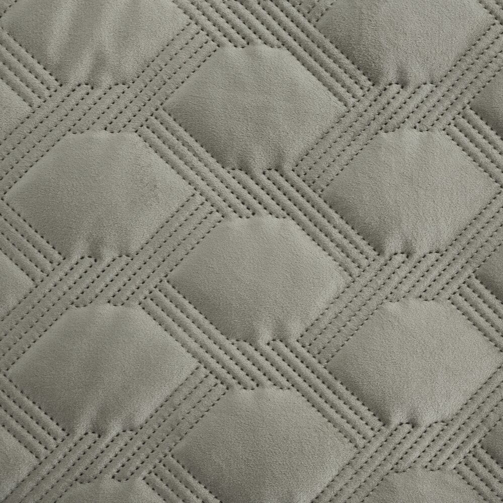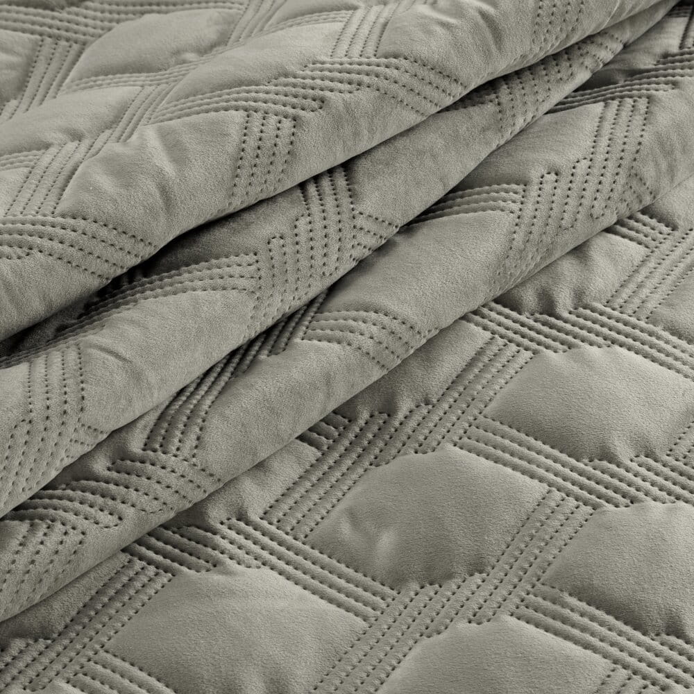 Narzuta welwetowa, wykonana techniką hot press" szerokość: 170 cm, długość: 210 cm, kolor: srebrny, Gramatura: 250 GSM, Skład: 100% poliester"
