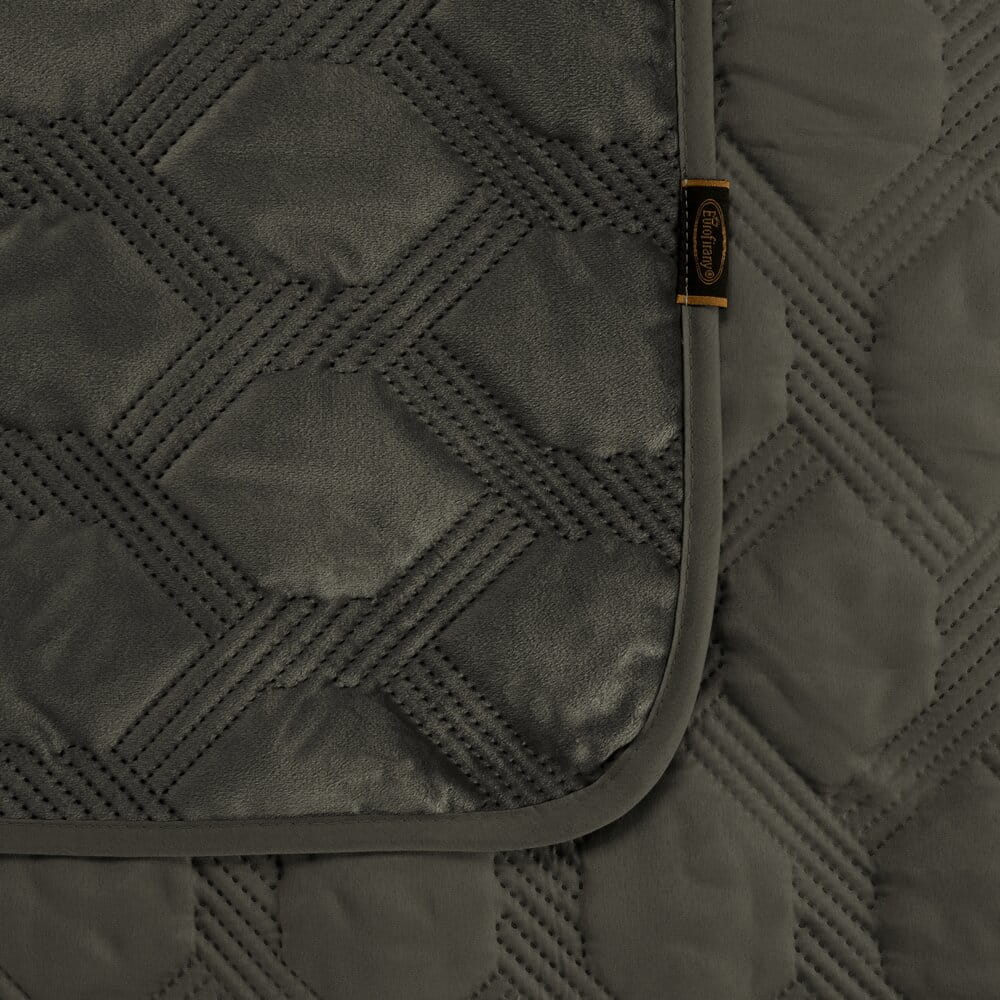 Narzuta welwetowa, wykonana techniką hot press" szerokość: 170 cm, długość: 210 cm, kolor: stalowy, Gramatura: 250 GSM, Skład: 100% poliester"