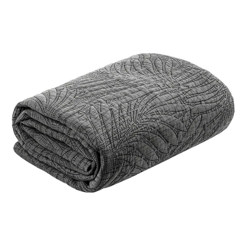 Narzuta stonewash wykonana techniką hotpress szerokość: 170 cm, długość: 210 cm, kolor: stalowy, Gramatura: 180 GSM, Skład: 100% poliester