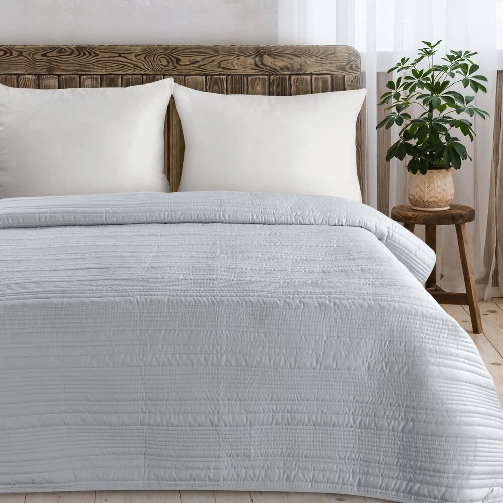 Narzuta na łóżko z przeszyciami szerokość: 170 cm, długość: 210 cm, kolor: srebrny, Gramatura: 320 GSM, Skład: 100% poliester