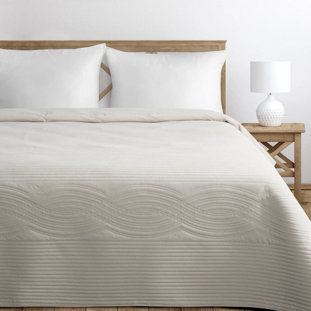 Narzuta welwetowa ozdobiona geometrycznym wzorem szerokość: 170 cm, długość: 210 cm, kolor: kremowy, Gramatura: 200 GSM, Skład: 100% poliester
