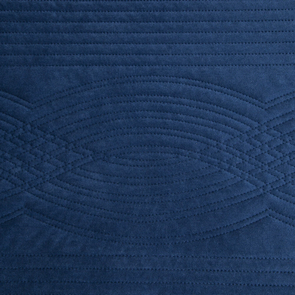 Narzuta welwetowa ozdobiona geometrycznym wzorem szerokość: 220 cm, długość: 240 cm, kolor: granatowy, Gramatura: 200 GSM, Skład: 100% poliester