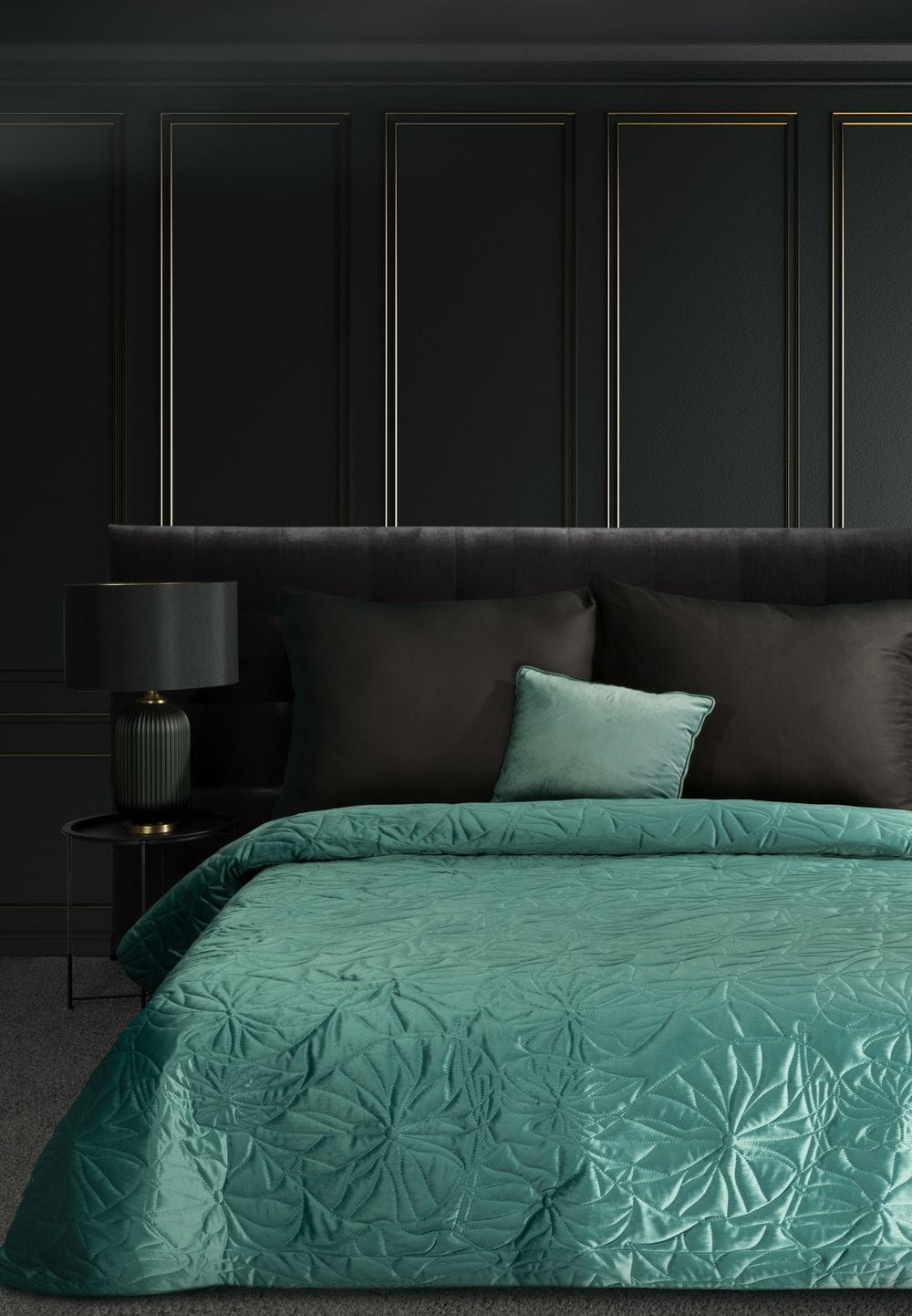 Narzuta welwetowa,wykonana techniką hot press" szerokość: 280 cm, długość: 260 cm, kolor: szałwiowy, Gramatura: 200+120+70 GSM, Skład: 100%poliester"