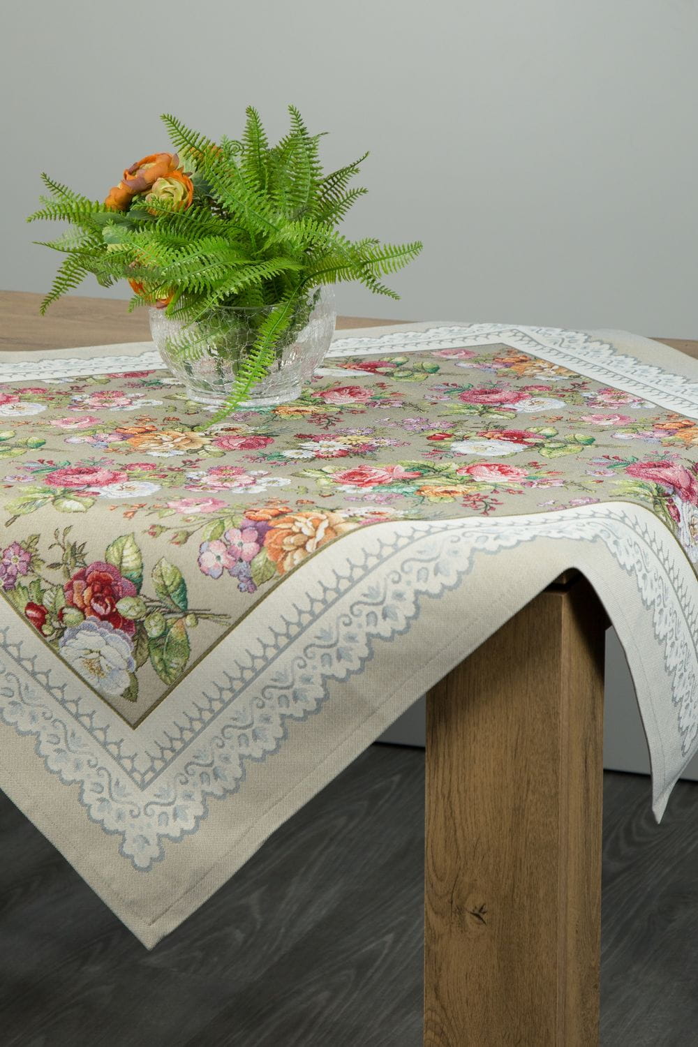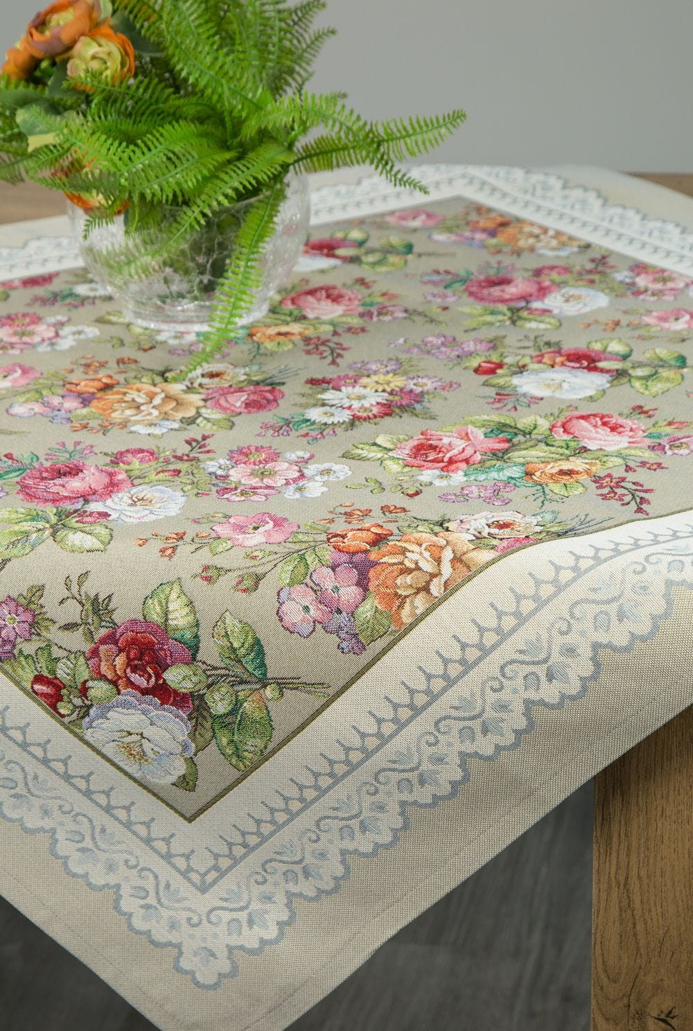 Obrus gobelinowy z tkanym wzorem kwiatowym