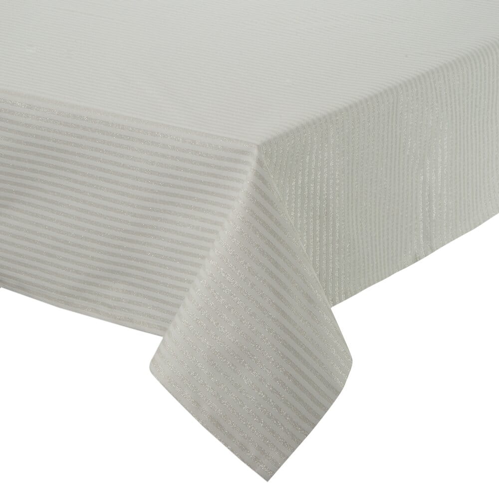 Obrus błyszczący z motywem świątecznym szerokość: 135 cm, długość: 180 cm, kolor: szampański, Skład: 65% poliester 27% bawełna 8% nić metaliczna