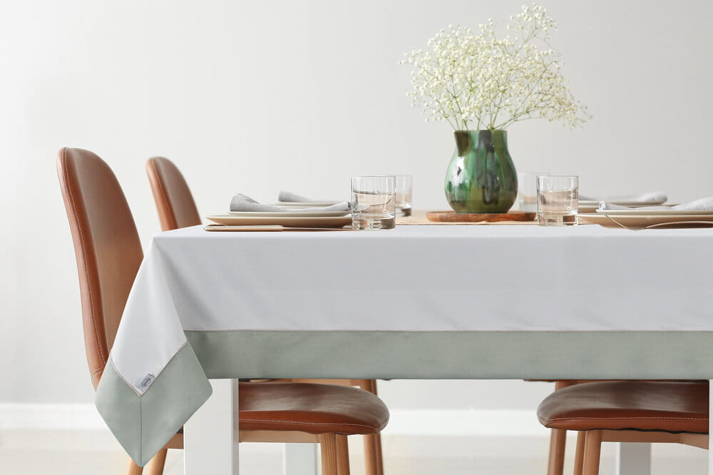 Bieżnik z kryzą zdobiony delikatną beżową lamówką szerokość: 40 cm, długość: 140 cm, kolor: naturalny, Gramatura: 230 GSM, Skład: 100% poliester