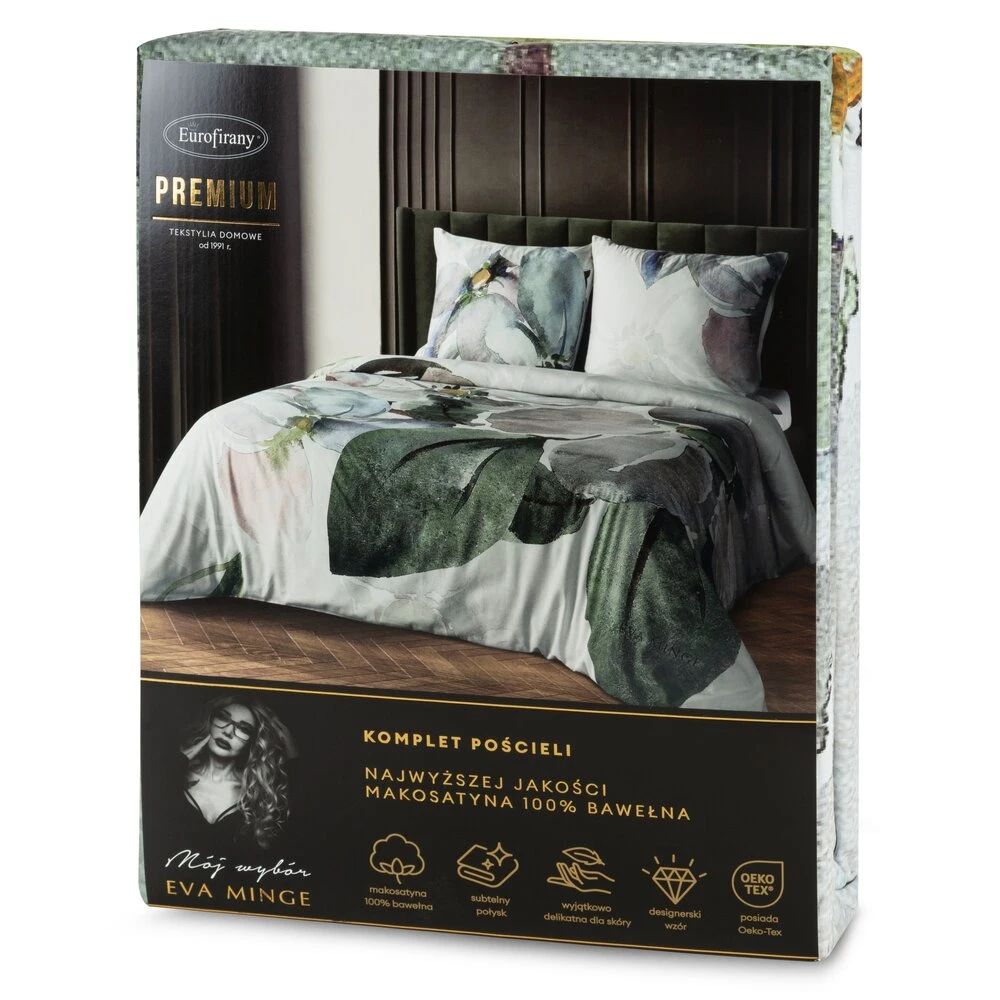 Komplet pościeli z makosatyny z nadrukiem cyfrowym,mój wybór-eva minge szerokość: 220 cm, długość: 200 cm, kolor: biały, Gramatura: 125 GSM, Skład: makosatyna, 100% bawełna