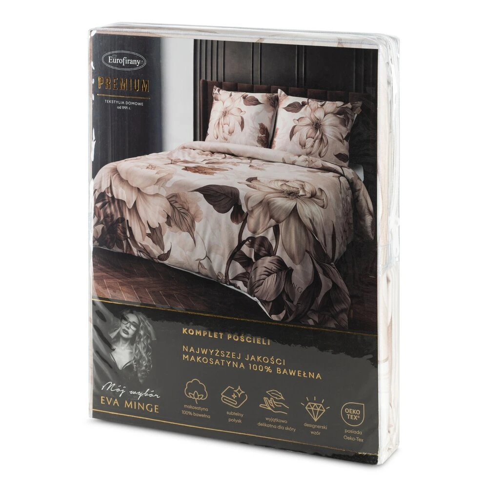 Komplet pościeli z makosatyny z nadrukiem cyfrowym,mój wybór-eva minge szerokość: 220 cm, długość: 200 cm, kolor: ciemnobeżowy, Gramatura: 125 GSM, Skład: makosatyna, 100% bawełna