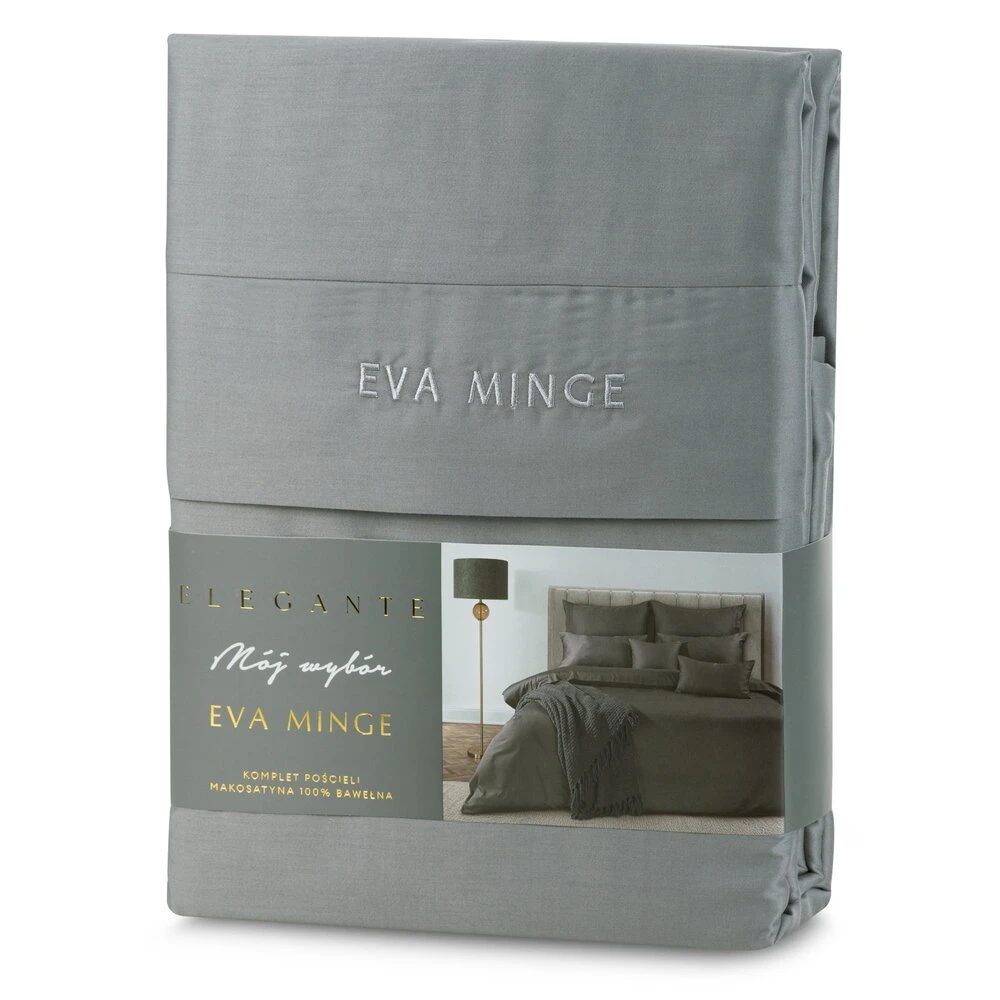 Komplet ekskluzywnej, designerskiej pościeli z satyny bawełnianej z kolekcji polecanej przez Eva Minge. Zapinana na zamek błyskawiczny. Precyzyjne wykonanie. szerokość: 160 cm, długość: 200 cm, kolor: stalowy, Gramatura: 125 GSM, Skład: makosatyna, 100% bawełna
