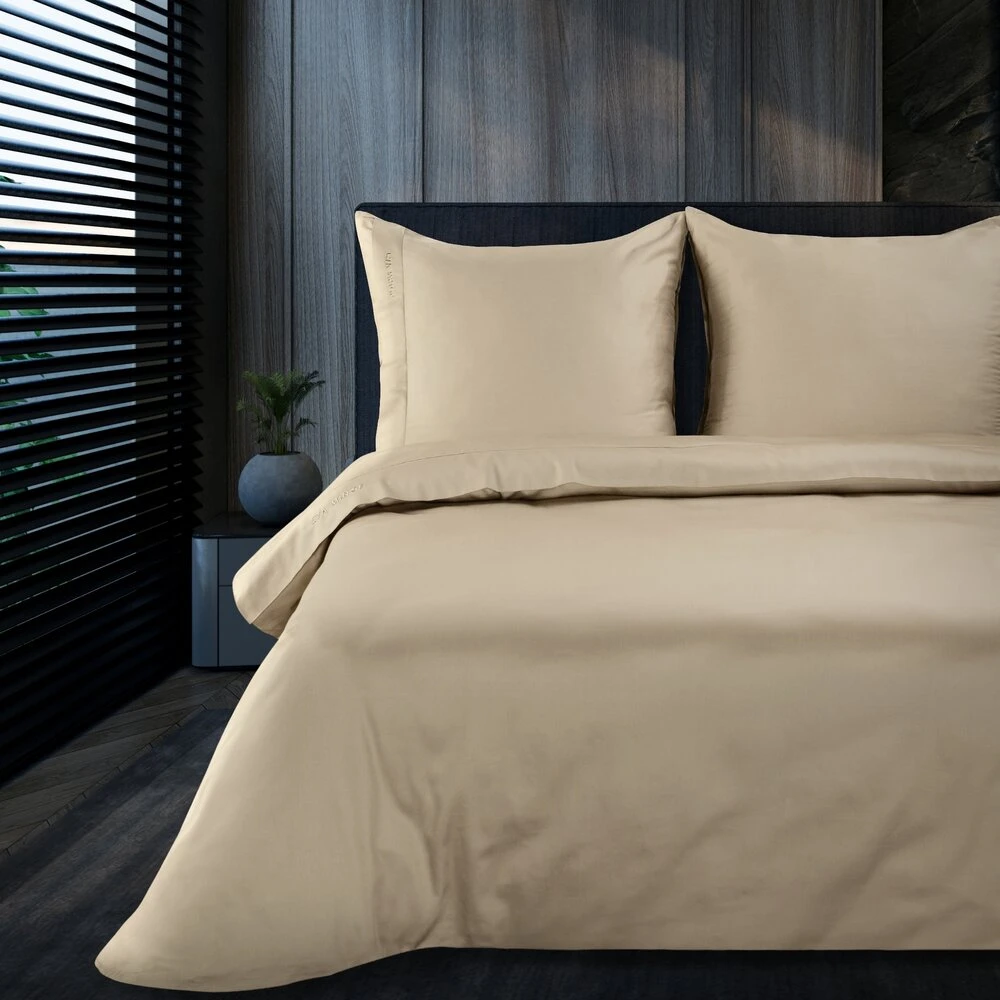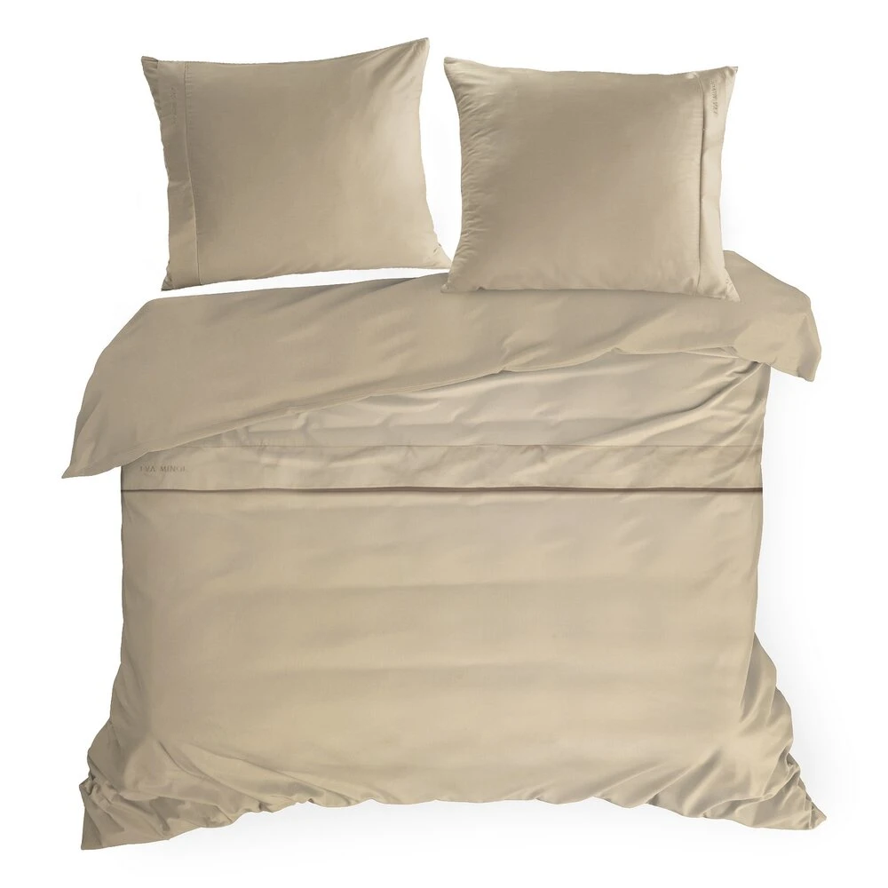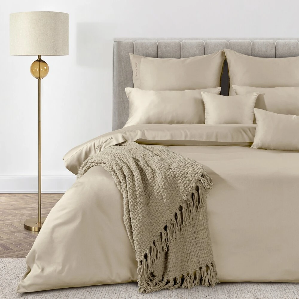 Komplet ekskluzywnej, designerskiej pościeli z satyny bawełnianej z kolekcji polecanej przez Eva Minge. Zapinana na zamek błyskawiczny. Precyzyjne wykonanie. szerokość: 140 cm, długość: 200 cm, kolor: beżowy, Gramatura: 125 GSM, Skład: makosatyna, 100% bawełna