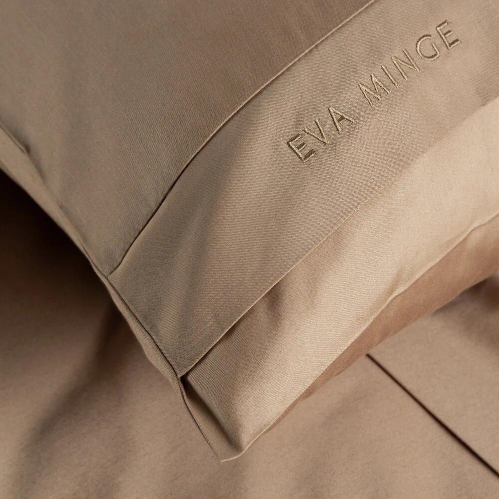 Komplet ekskluzywnej, designerskiej pościeli z satyny bawełnianej z kolekcji polecanej przez Eva Minge. Zapinana na zamek błyskawiczny. Precyzyjne wykonanie. szerokość: 140 cm, długość: 200 cm, kolor: jasnobrązowy, Gramatura: 125 GSM, Skład: makosatyna, 100% bawełna
