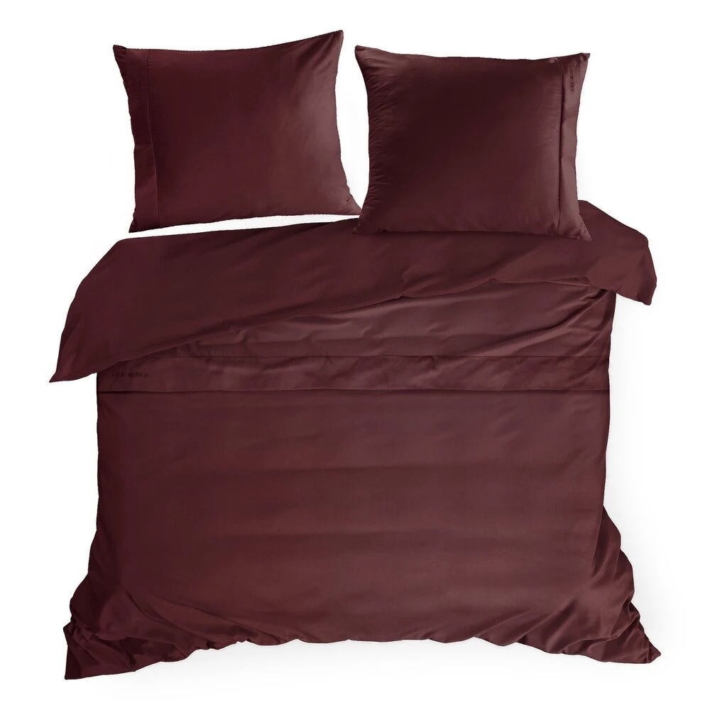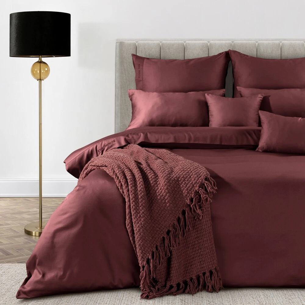 Komplet ekskluzywnej, designerskiej pościeli z satyny bawełnianej z kolekcji polecanej przez Eva Minge. Zapinana na zamek błyskawiczny. Precyzyjne wykonanie. szerokość: 160 cm, długość: 200 cm, kolor: bordowy, Gramatura: 125 GSM, Skład: makosatyna, 100% bawełna