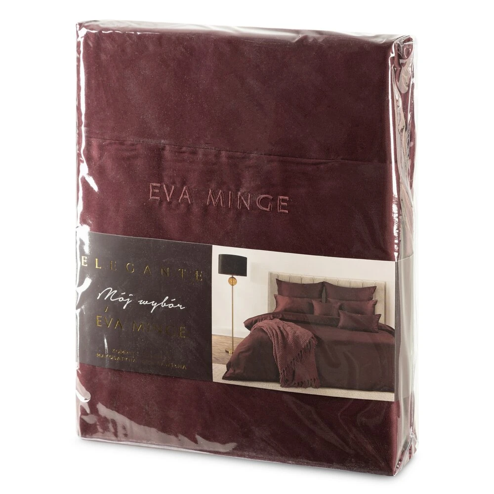 Komplet ekskluzywnej, designerskiej pościeli z satyny bawełnianej z kolekcji polecanej przez Eva Minge. Zapinana na zamek błyskawiczny. Precyzyjne wykonanie. szerokość: 220 cm, długość: 200 cm, kolor: bordowy, Gramatura: 125 GSM, Skład: makosatyna, 100% bawełna
