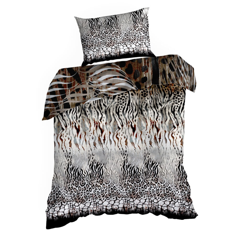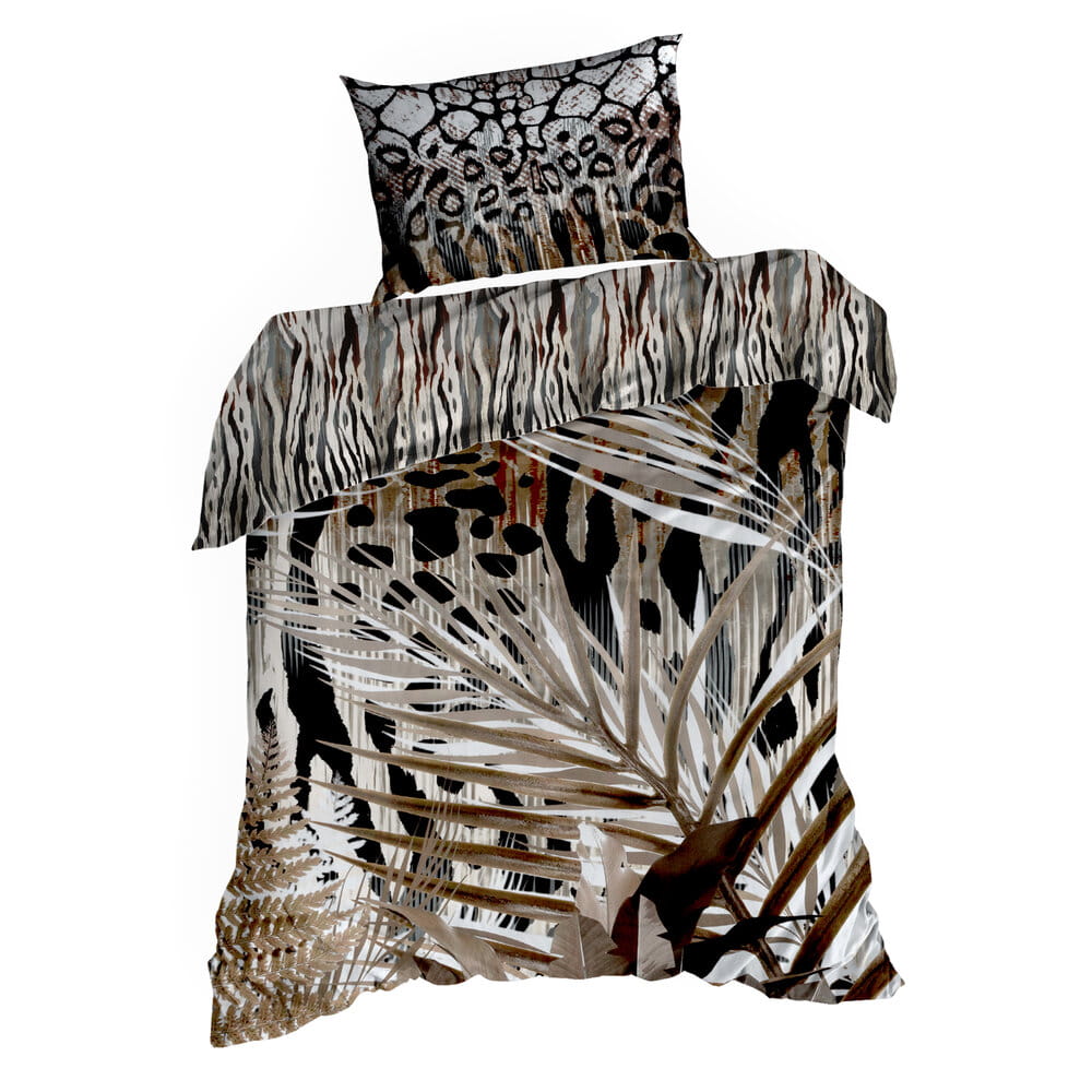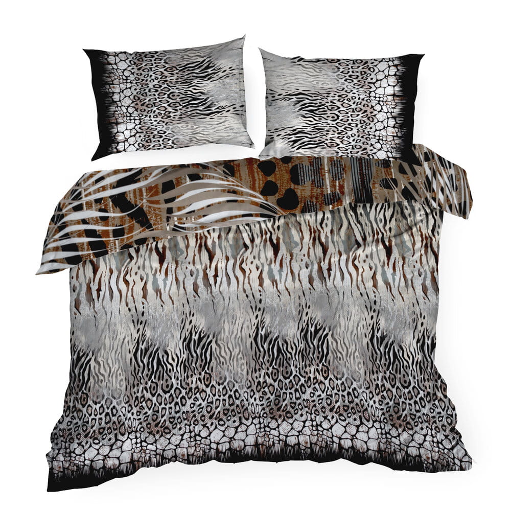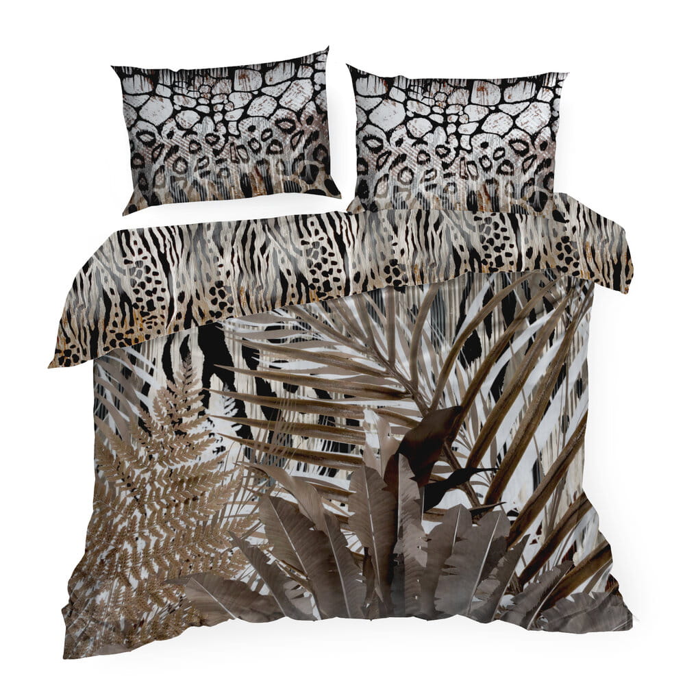 Komplet ekskluzywnej, designerskiej pościeli z satyny bawełnianej z kolekcji polecanej przez Eva Minge. Zapinana na zamek błyskawiczny. Precyzyjne wykonanie. szerokość: 160 cm, długość: 200 cm, kolor: brązowy, Gramatura: 125 GSM, Skład: makosatyna, 100% bawełna