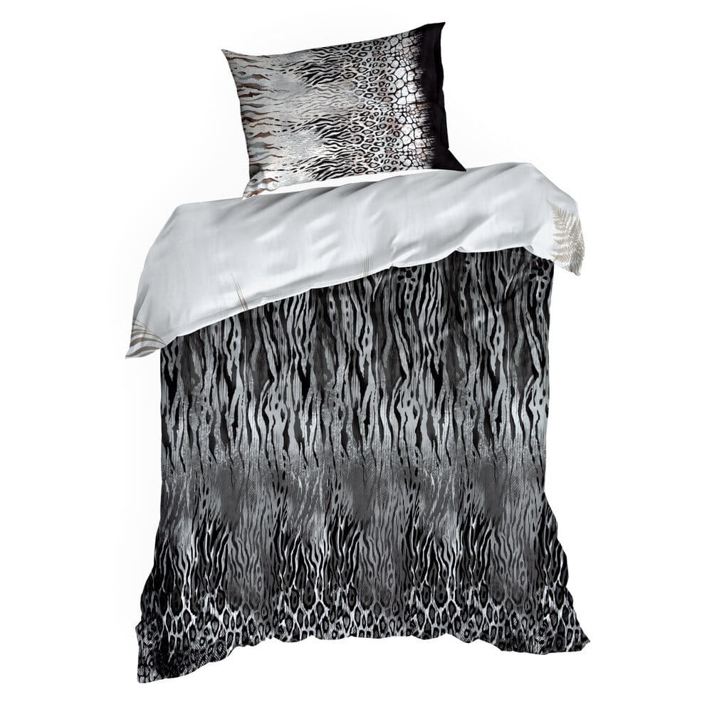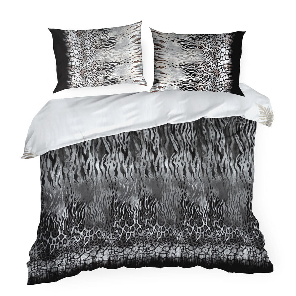 Komplet ekskluzywnej, designerskiej pościeli z satyny bawełnianej z kolekcji polecanej przez Eva Minge. Zapinana na zamek błyskawiczny. Precyzyjne wykonanie. szerokość: 220 cm, długość: 200 cm, kolor: stalowy, Gramatura: 125 GSM, Skład: makosatyna, 100% bawełna