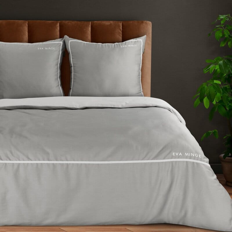 Komplet ekskluzywnej, designerskiej pościeli z satyny bawełnianej z kolekcji polecanej przez Eva Minge. Zapinana na zamek błyskawiczny. Precyzyjne wykonanie. szerokość: 160 cm, długość: 200 cm, kolor: szary, Gramatura: 125 GSM, Skład: 100% bawełna