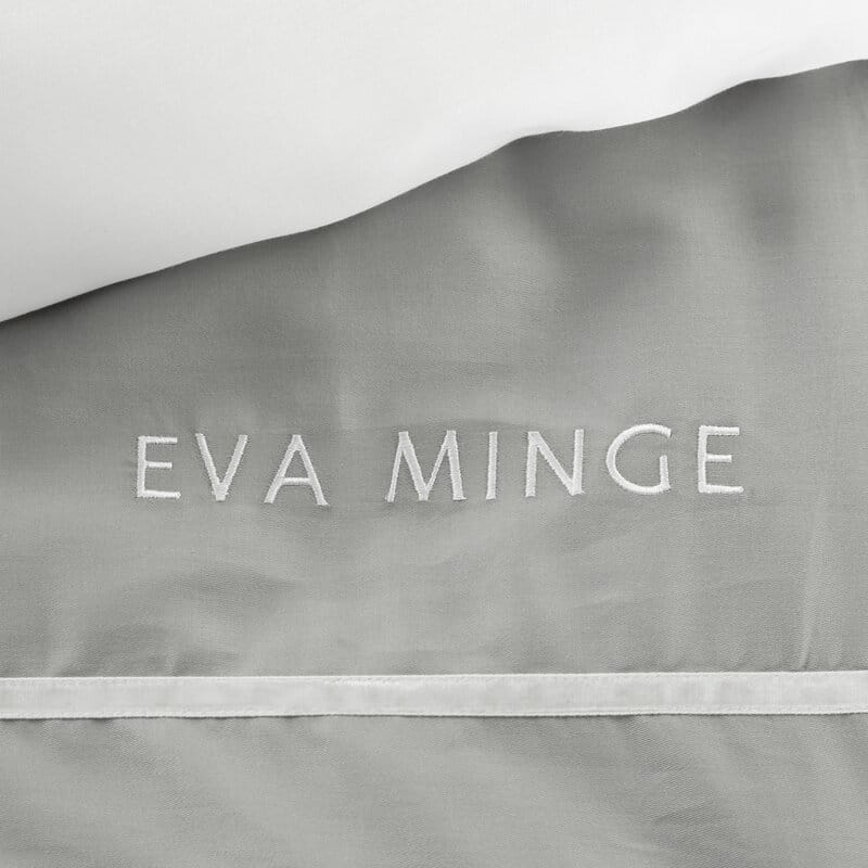 Komplet ekskluzywnej, designerskiej pościeli z satyny bawełnianej z kolekcji polecanej przez Eva Minge. Zapinana na zamek błyskawiczny. Precyzyjne wykonanie. szerokość: 220 cm, długość: 200 cm, kolor: szary, Gramatura: 125 GSM, Skład: 100% bawełna