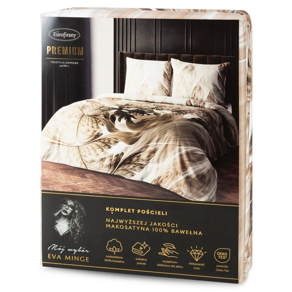 Komplet pościeli z makosatyny z nadrukiem cyfrowym,mój wybór-eva minge szerokość: 220 cm, długość: 200 cm, kolor: biały, Gramatura: 125 GSM, Skład: makosatyna, 100% bawełna