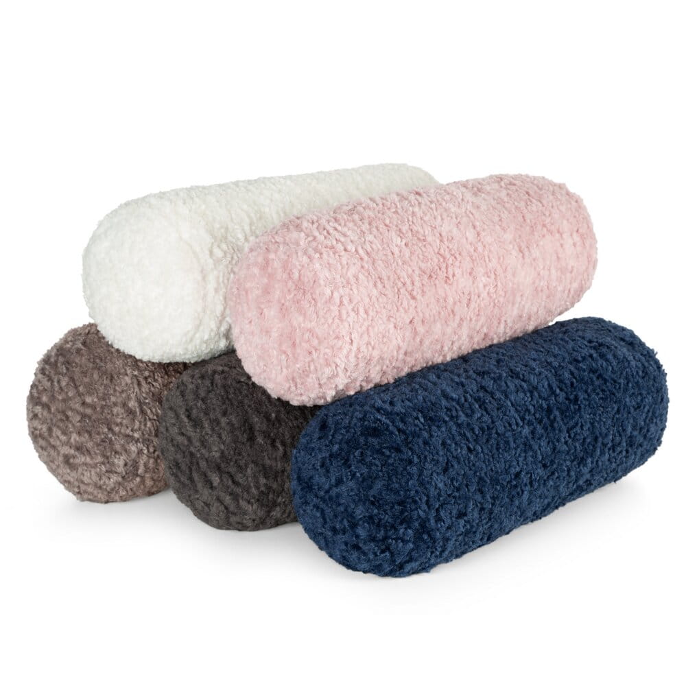 Jednokolorowy wałek dekoracyjny z bukli z wypełnieniem szerokość: 45 cm, długość: 15 cm, kolor: granatowy, Gramatura: 480 GSM, Skład: 100% poliester