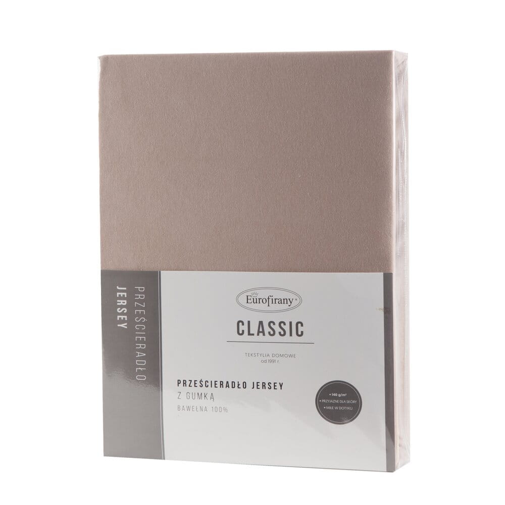Bawełniane prześcieradło jerseyowe z gumką szerokość: 220 cm, długość: 200 , wys.30 cm, kolor: beżowy, Gramatura: 140 GSM, Skład: 100% bawełna