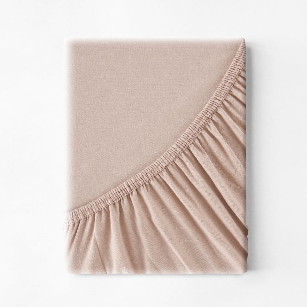 Bawełniane prześcieradło dżersejowe z gumką szerokość: 240 cm, długość: 220 cm, kolor: beżowy, Gramatura: 140 GSM, Skład: 100% bawełna