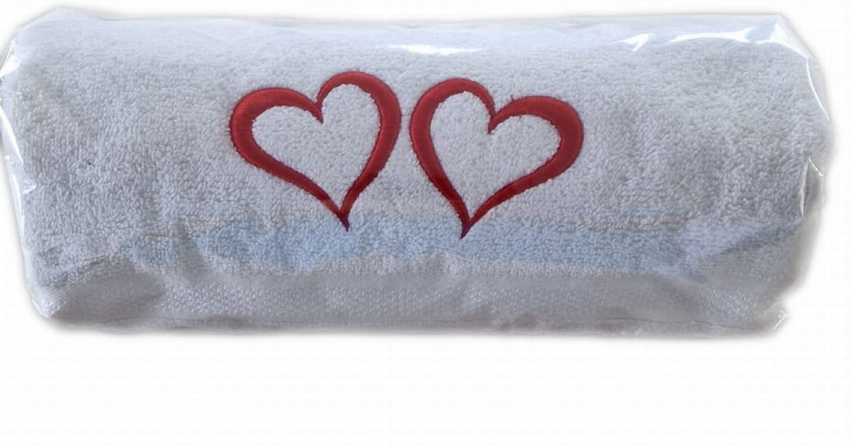 Ręcznik z haftem „Serca” doskonale sprawdzi się jako prezent: