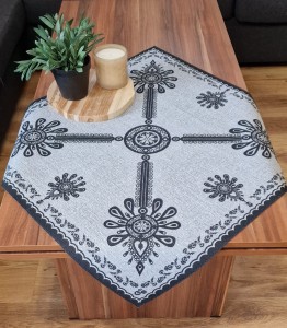 Serweta z czarną parzenicą na szarym podkładzie to połączenie tradycyjnego motywu podhalańskiego z nowoczesną, stonowaną kolorystyką. Geometryczny wzór parzenicy nadaje dekoracji charakteru i wyrazistości, a neutralne tło sprawia, że serweta idealnie wpisuje się zarówno w klasyczne, jak i nowoczesne wnętrza.