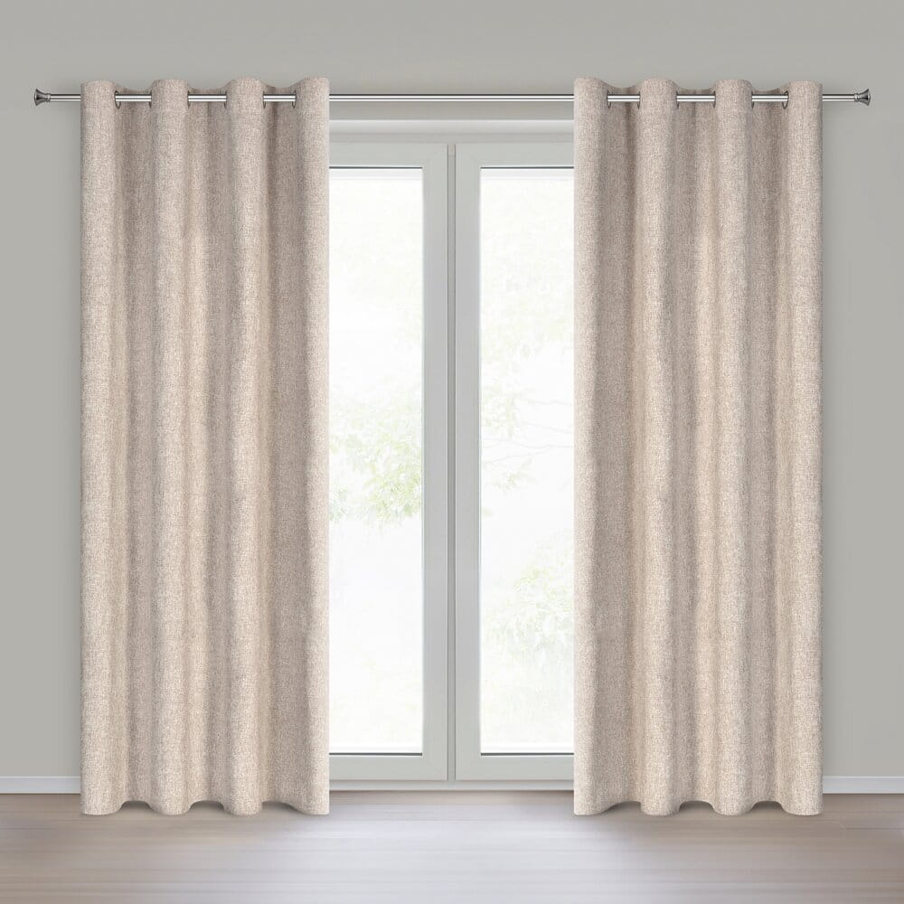 Zasłona gotowa w stylu eko szerokość: 140 cm, długość: 250 cm, kolor: beżowy, Gramatura: 120 GSM, Skład: 100% poliester