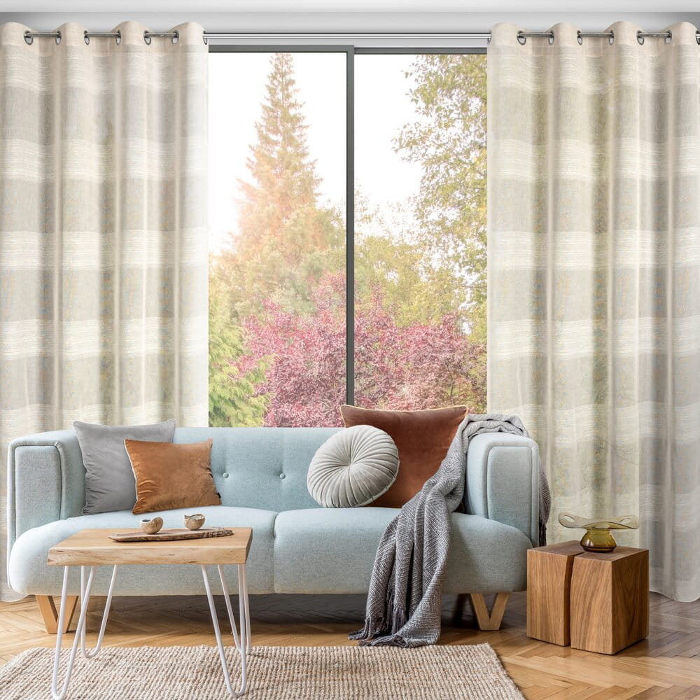 Zasłona gotowa z szenilowymi pasami szerokość: 140 cm, długość: 250 cm, kolor: beżowy, Gramatura: 120 GSM, Skład: 100% poliester