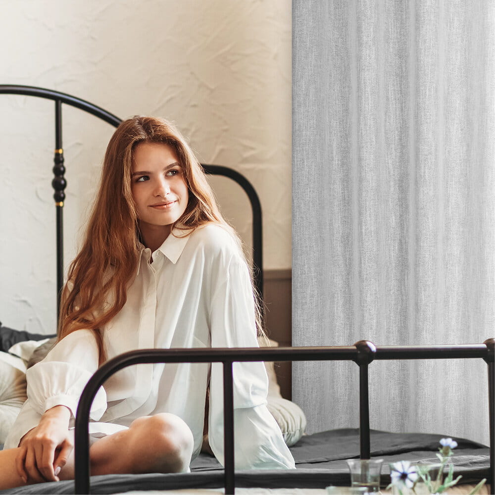 Zasłona w stylu eko szerokość: 140 cm, długość: 250 cm, kolor: popielaty, Gramatura: 170 GSM, Skład: 100% poliester