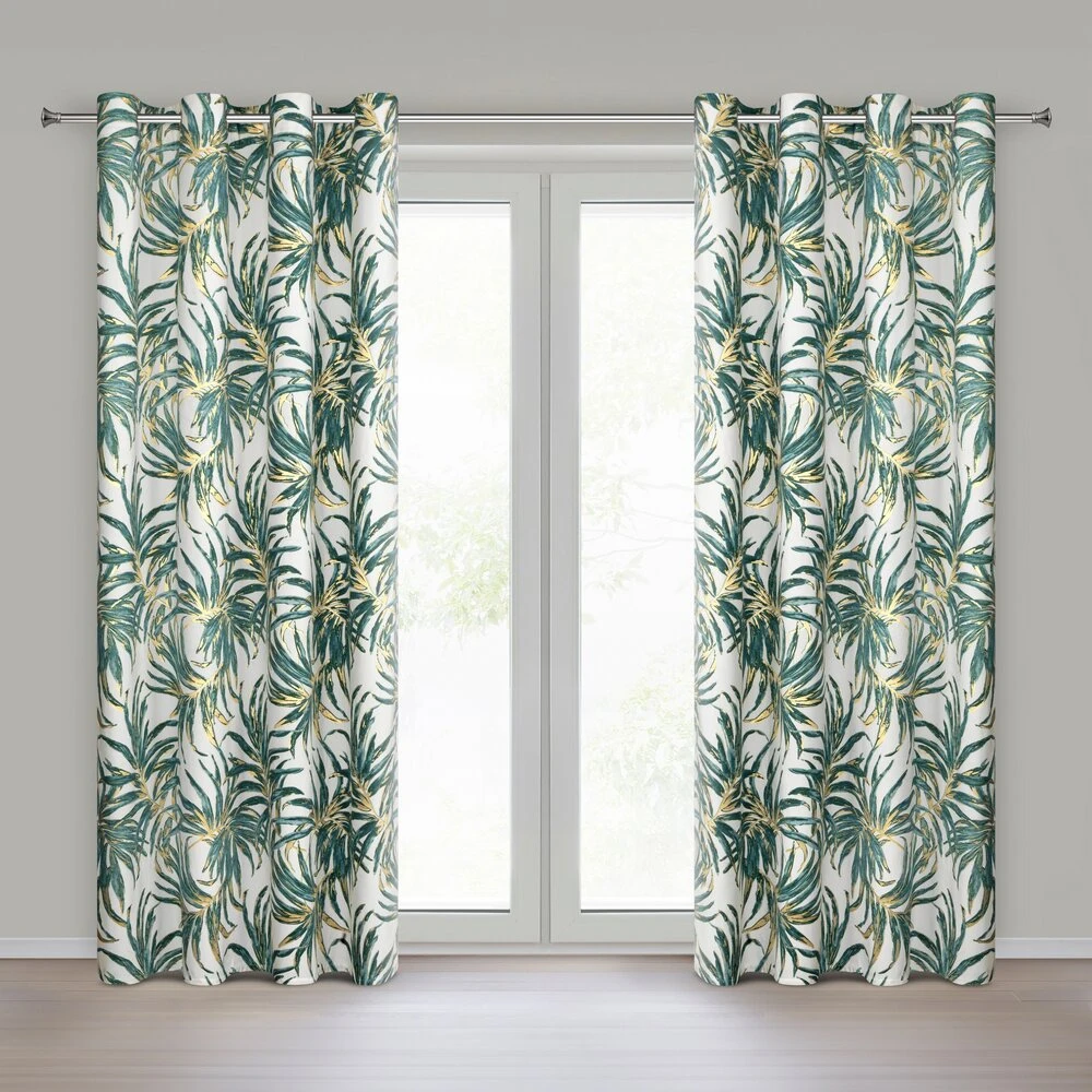 Zasłona gotowa welwetowa z błyszczącym nadrukiem szerokość: 140 cm, długość: 250 cm, kolor: biały, Gramatura: 200 GSM, Skład: 100% poliester