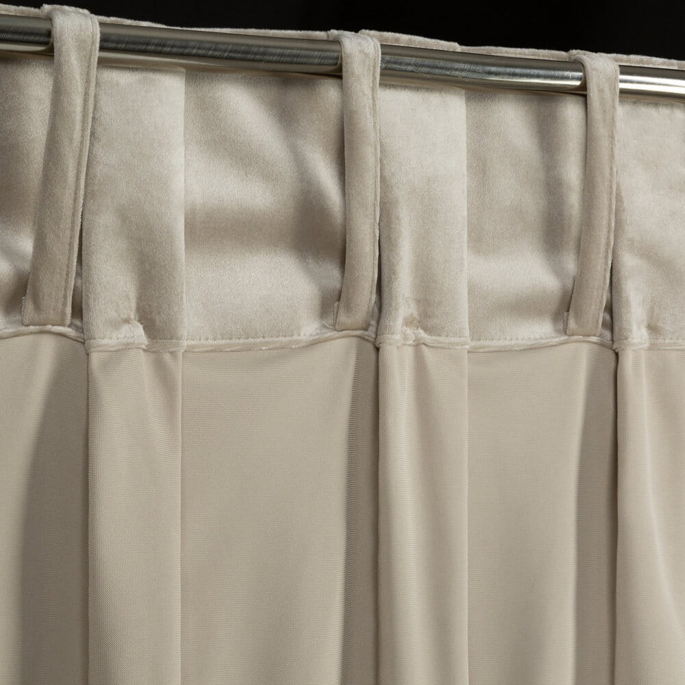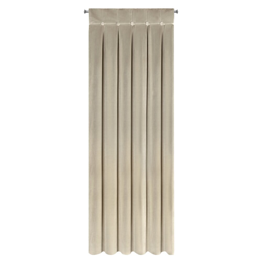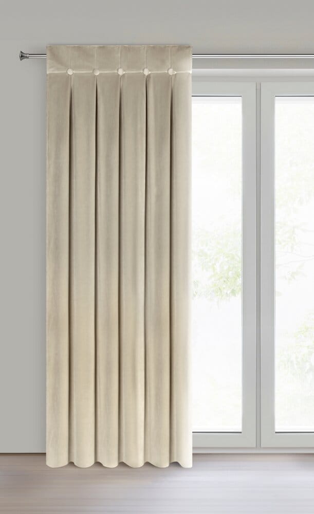 Zasłona z błyszczącego welwetu z górą zdobioną guzikami o szer 85 cm szerokość: 140 cm, długość: 250 cm, kolor: beżowy, Gramatura: 250 GSM, Skład: 100% poliester