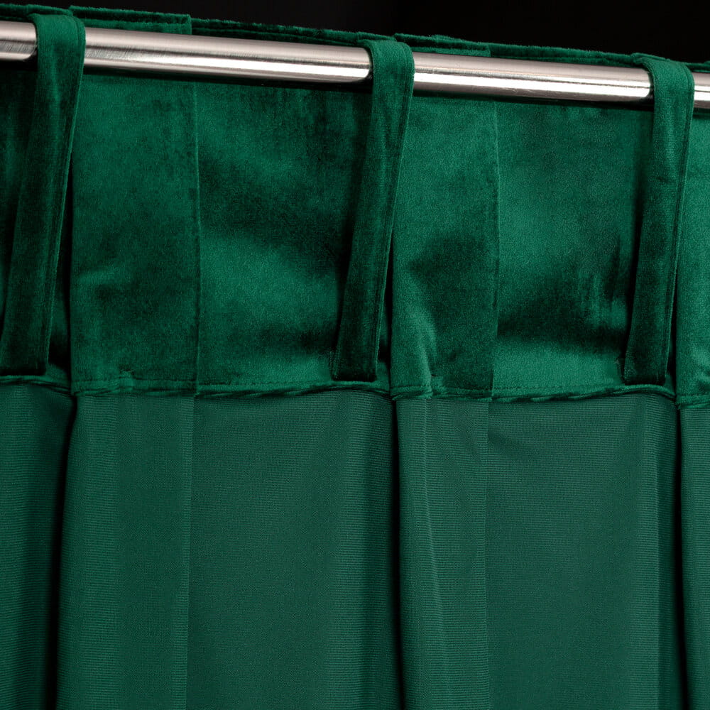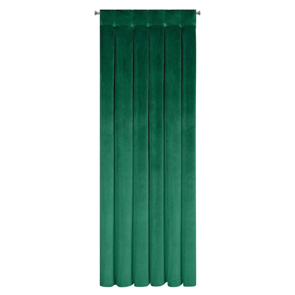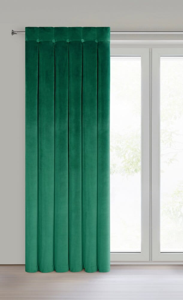 Zasłona z błyszczącego welwetu z górą zdobioną guzikami o szer 85 cm szerokość: 140 cm, długość: 250 cm, kolor: ciemnozielony, Gramatura: 250 GSM, Skład: 100% poliester
