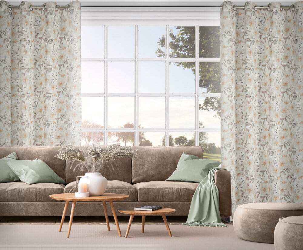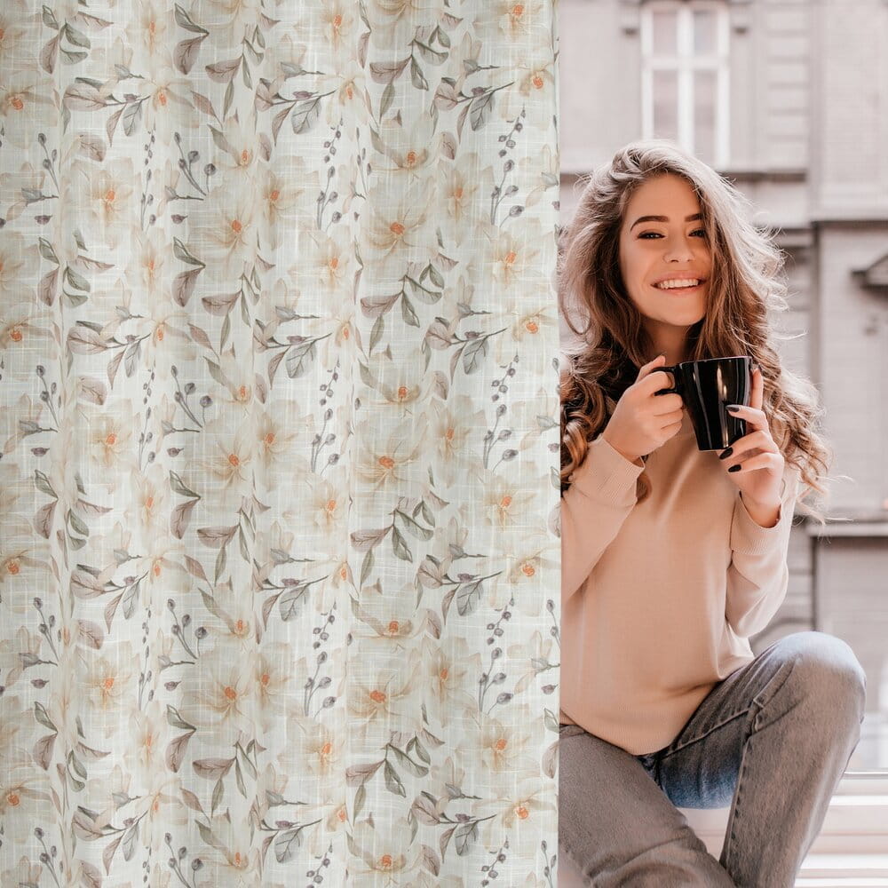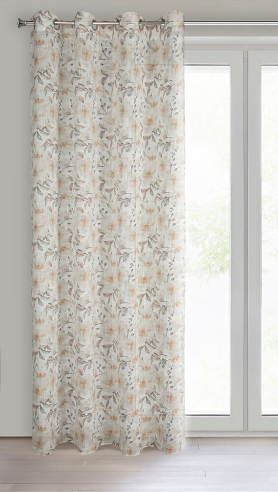 Gotowa zasłona w stylu eko z motywem botanicznym szerokość: 140 cm, długość: 250 cm, kolor: naturalny, Gramatura: 140 GSM, Skład: 100% poliester