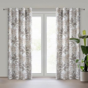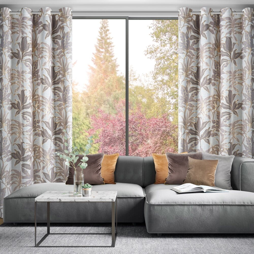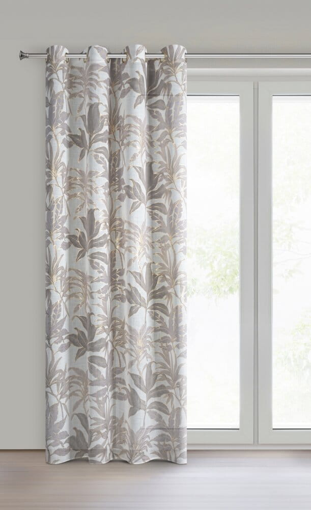 Zasłona gotowa w stylu eko z podwójnym nadrukiem szerokość: 135 cm, długość: 250 cm, kolor: biały, Gramatura: 115 GSM, Skład: 100% poliester